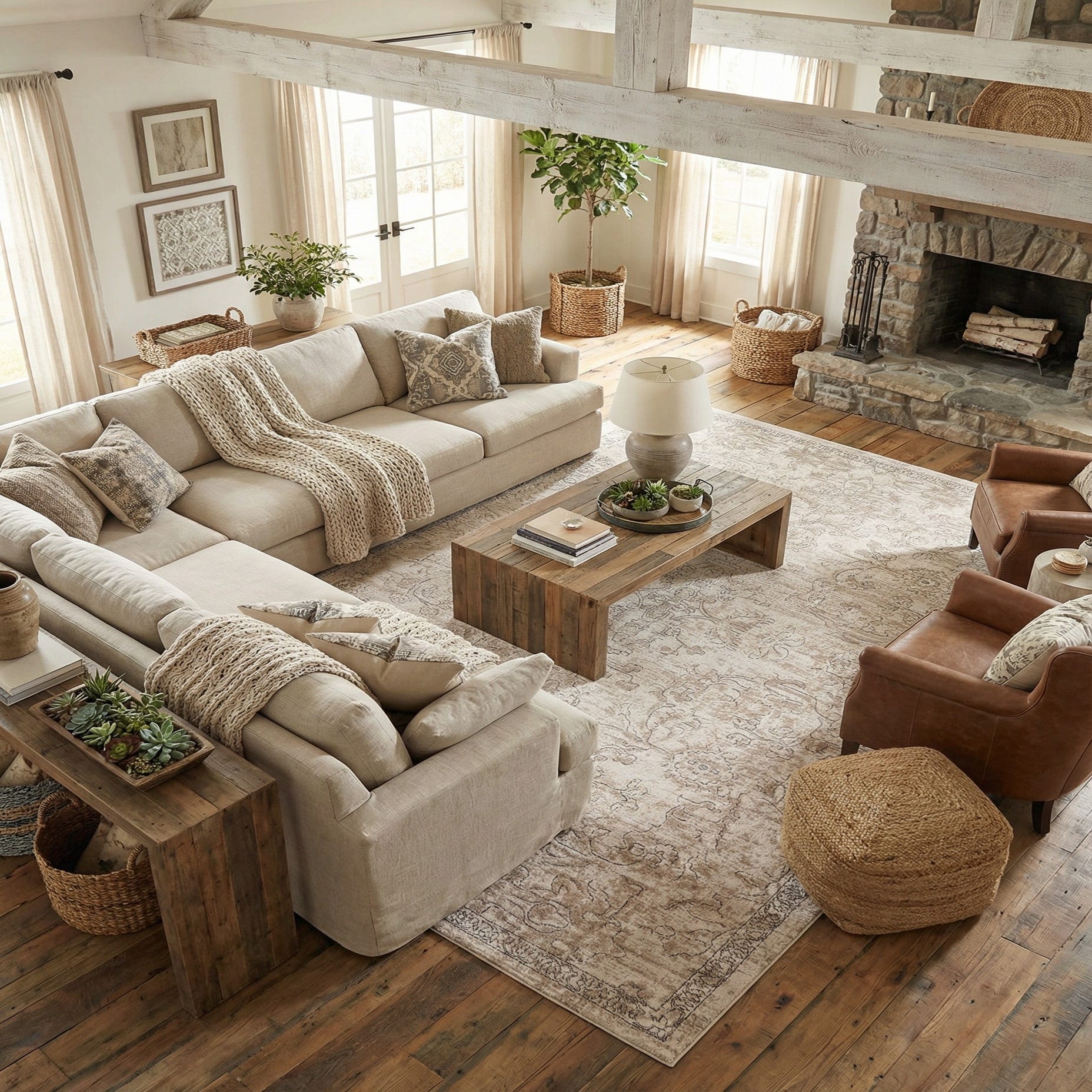 Machine made from 85% polypropylene and 15% polyester, the rug has a low, even pile with a soft hand and a touch of sheen from the polyester yarns. It lays flat and feels smooth underfoot, making it a comfortable anchor for seating areas. Pair it with warm wood furniture and linen upholstery for a relaxed classic look, use it under a living room conversational group to tie seating together, or place it beneath a dining table in a neutral dining space. It also complements modern farmhouse, coastal, and transitional interiors that favor muted palettes and layered textures.