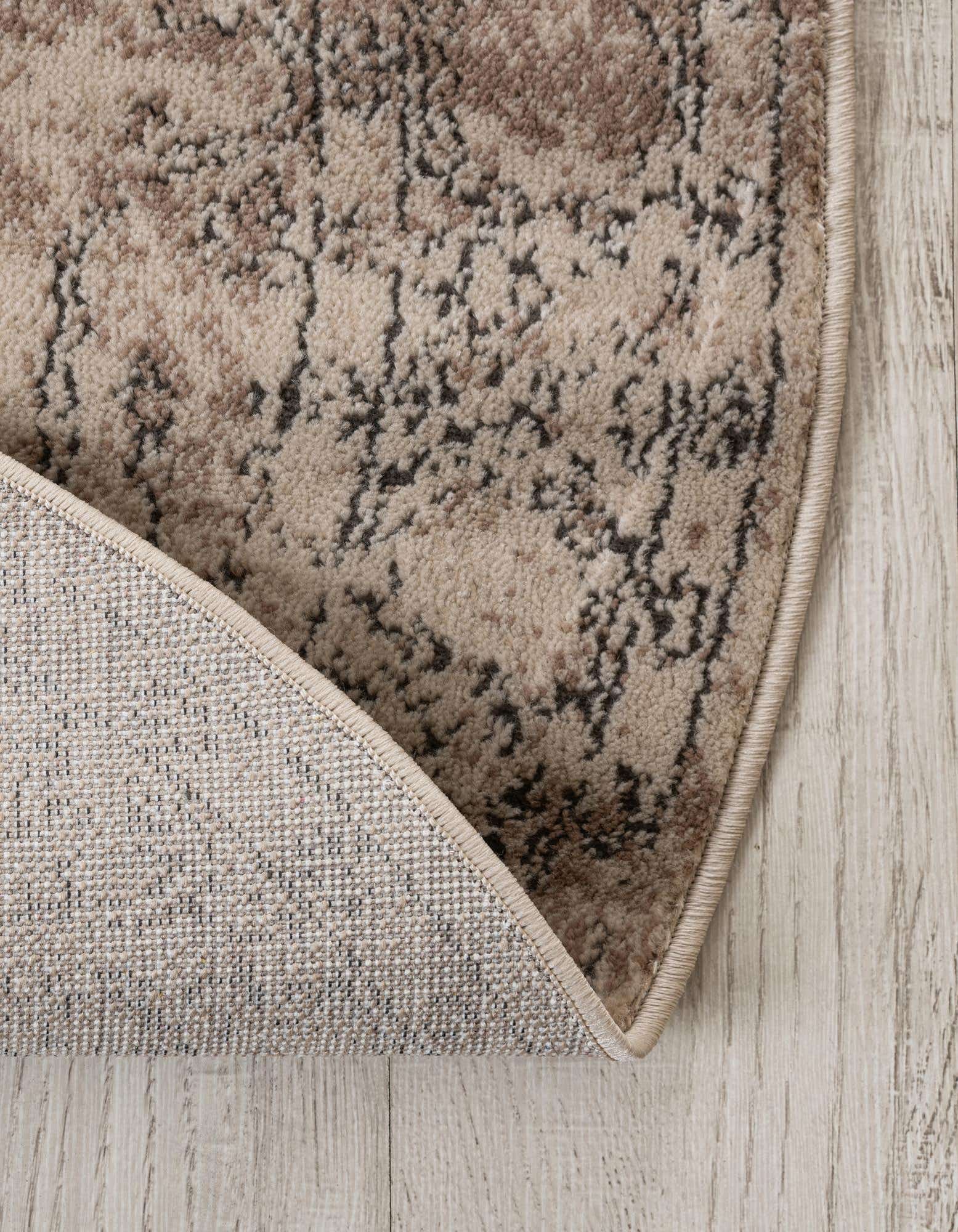 Suited for transitional spaces where the blending of classic and contemporary elements is desired, the rug's neutral tones can serve as a harmonious foundation in a minimalist setting or balance bolder decors. The round shape provides a dynamic alternative to rectangular rugs and can help soften spaces with many straight lines or angular furniture.