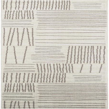 This Hanahan collection runner showcases a subtle yet captivating pattern with its machine-woven construction of 100% polypropylene. The design features an ivory background accented with linear gray motifs, lending a contemporary edge to its visual appeal. The texture is designed to provide both durability and comfort underfoot.