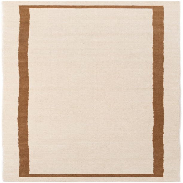 A crisp, single-line border defines this runner: an ivory field framed by a warm light brown band that sits just inside the rug’s edges. The simple, geometric motif reads modern and pared-back while nodding to classic bordered rugs, making it a versatile choice for a range of interiors. Hand made from 80% wool and 20% cotton, the surface has a natural, tactile feel — the wool pile offers a resilient, slightly cushiony hand and the cotton foundation gives subtle structure and stability.