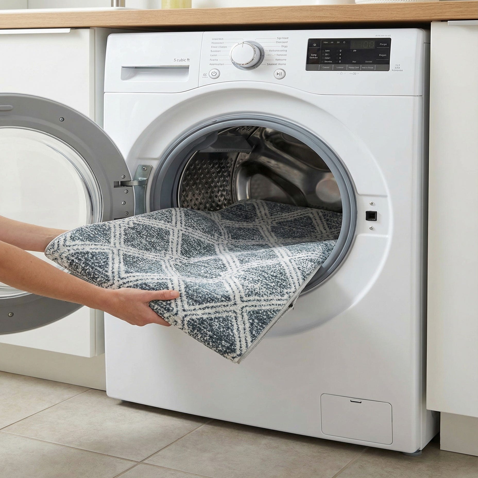 As a machine washable floor covering, it promotes ease of cleaning, aligning with the demands of a high-traffic environment while maintaining its visual appeal. Its texture is a balancing act of softness underfoot and resilient fibers to withstand daily wear.