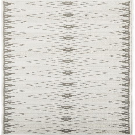 A 12 ft runner rug in ivory with a modern geometric diamond pattern in light gray, ideal for a hallway.