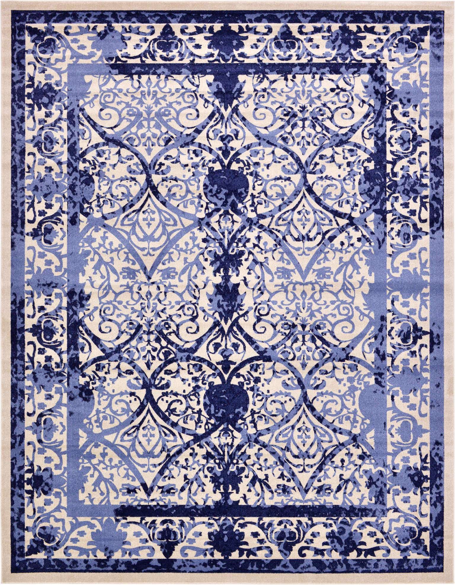 Primary color is Ivory. Colors in this rug include: Ivory, Blue, Light Blue, Navy Blue.