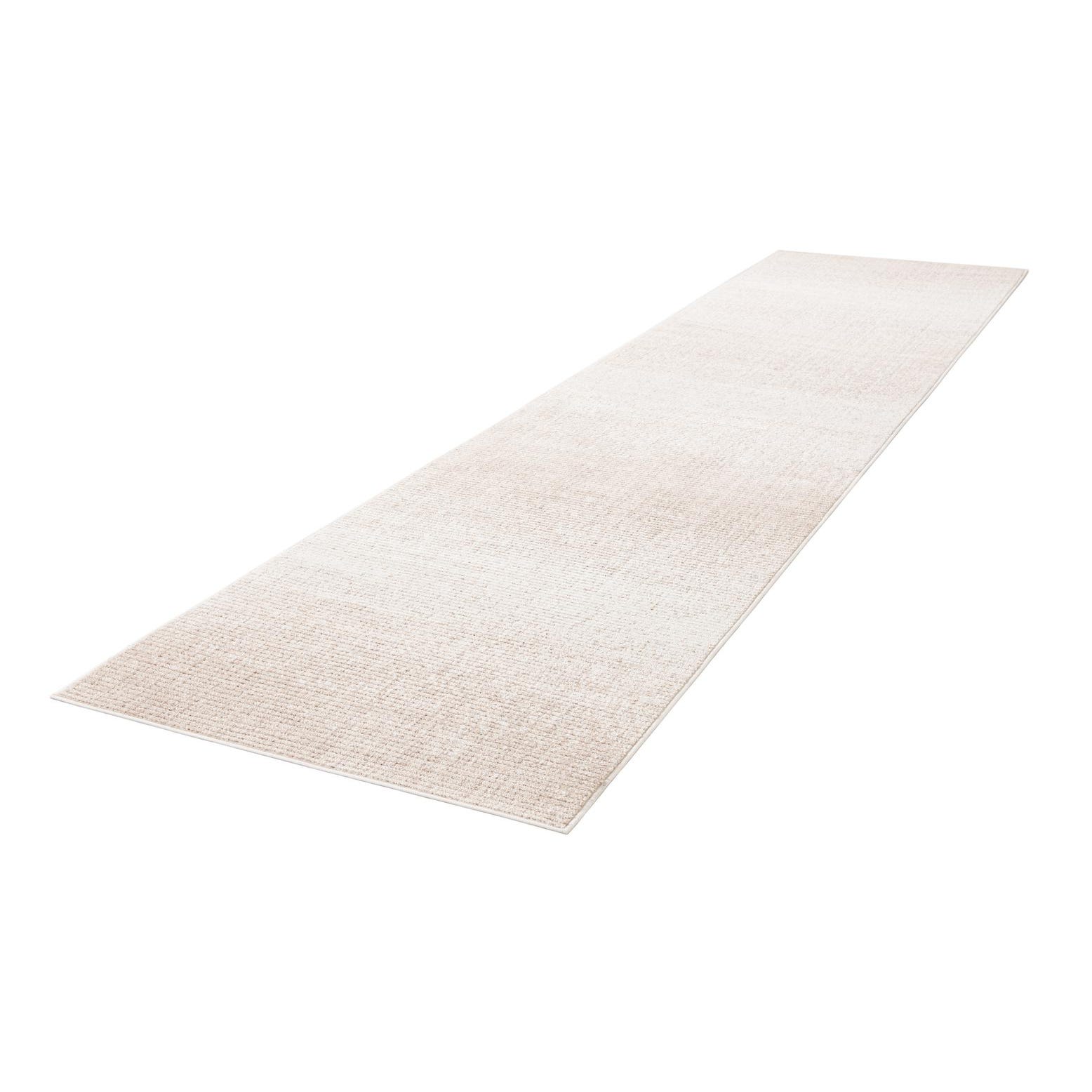 A long, rectangular 13 ft runner rug in shades of ivory and cream with a subtle textured pattern, ideal for hallways.