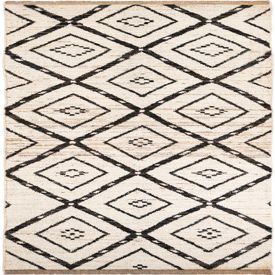 Primary color is Ivory. Colors in this rug include: Ivory, Black.