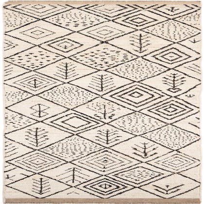Primary color is Ivory. Colors in this rug include: Ivory, Black.