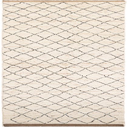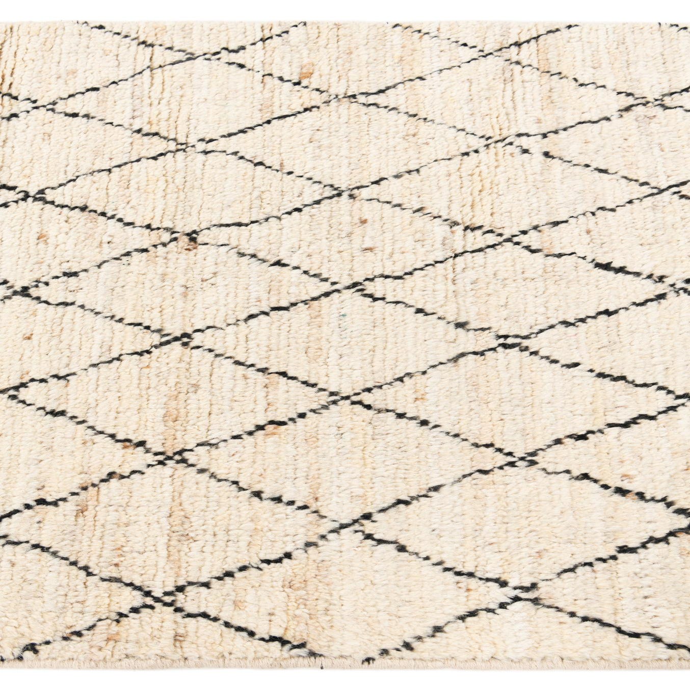 A 16 ft runner rug from the Rugs.com Moroccan collection, featuring an ivory shag pile with a black tribal diamond pattern, perfect for a hallway.