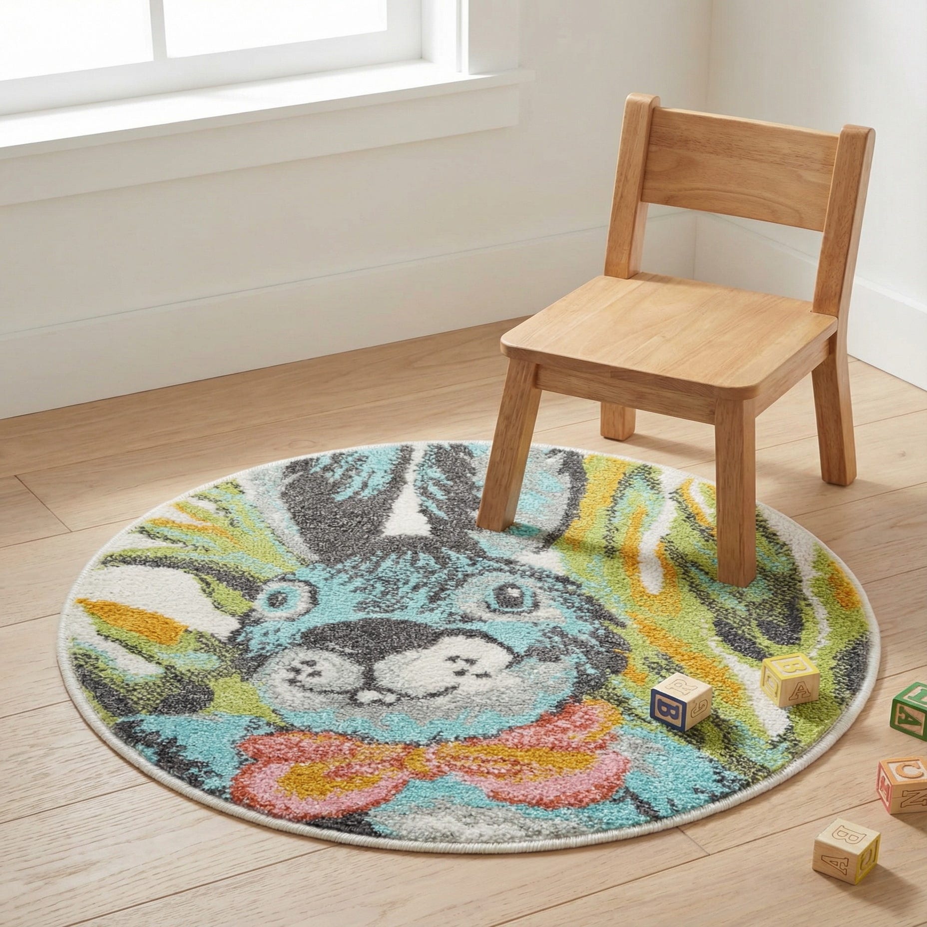2' 2 x 2' 2 Rabbit Whimsy Kids Round Rug