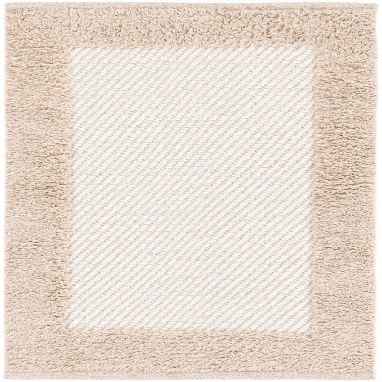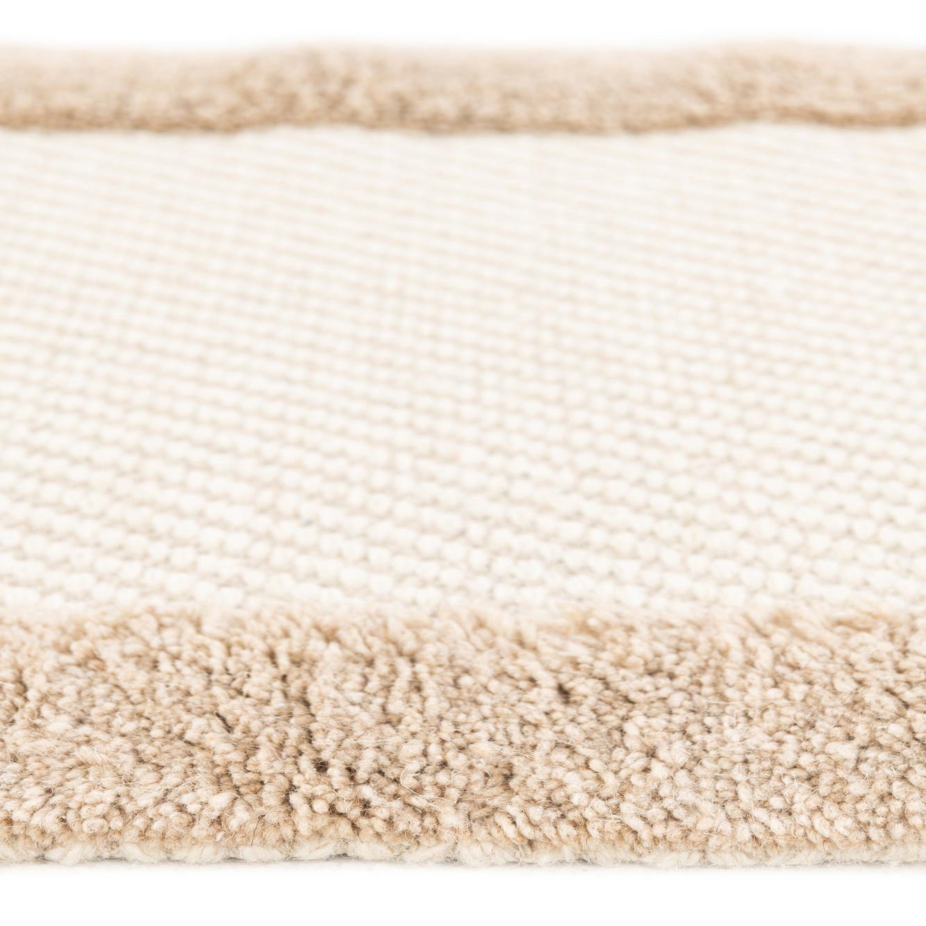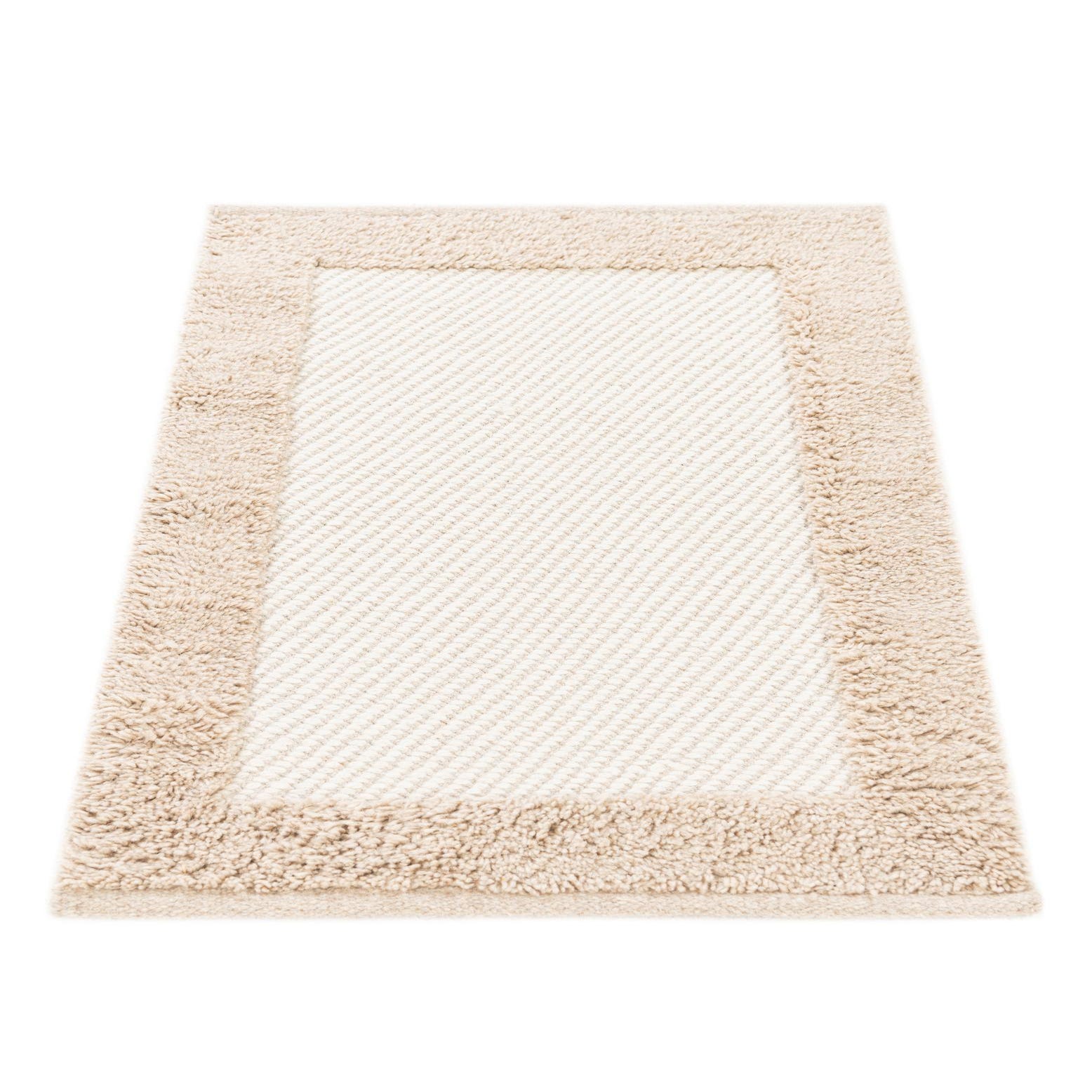 A 2x3 rectangular modern rug with a creamy white center and a textured ivory border, perfect for a kitchen or entryway.