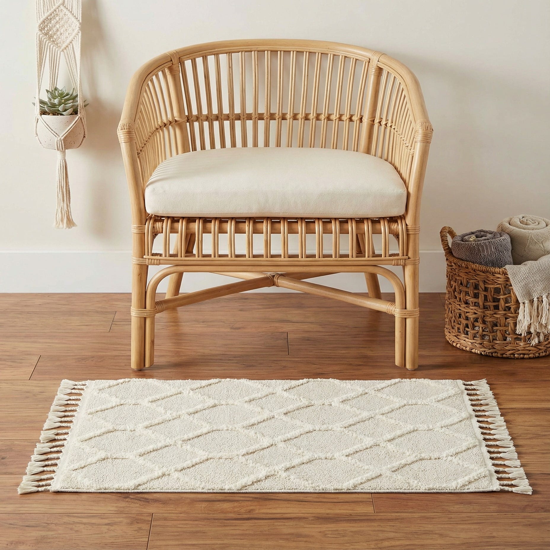 The braided fringe on either end of the rug introduces a playful, bohemian aesthetic, which harmonizes beautifully with eclectic, contemporary, or casual decor. Ideal for layering or as a standalone piece, this rug can seamlessly integrate into a living room, study, or even a chic entryway.