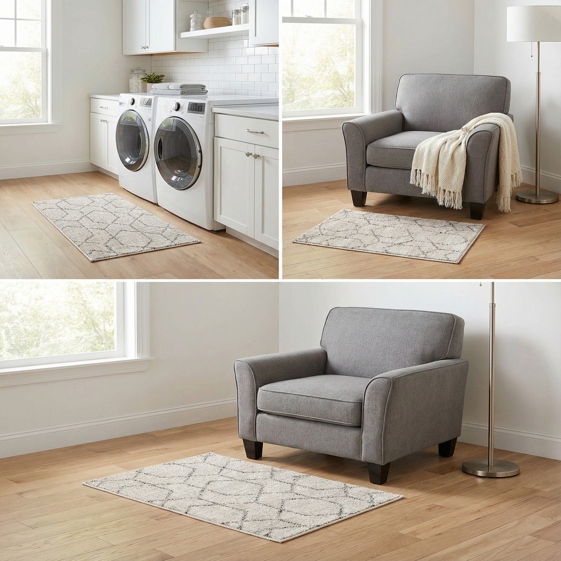 Machine-made of 100% recycled space-dyed polyester, this piece offers consistent construction and a soft, low-slung pile that fits easily under furniture or in high-traffic zones. Its neutral palette and casual geometric pattern work well in contemporary and transitional settings—try it in an entryway, layered beneath a small seating group, or placed by a bedside. It also pairs nicely with Scandinavian, minimalist, or modern farmhouse décor schemes where a subtle, textural anchor is needed.