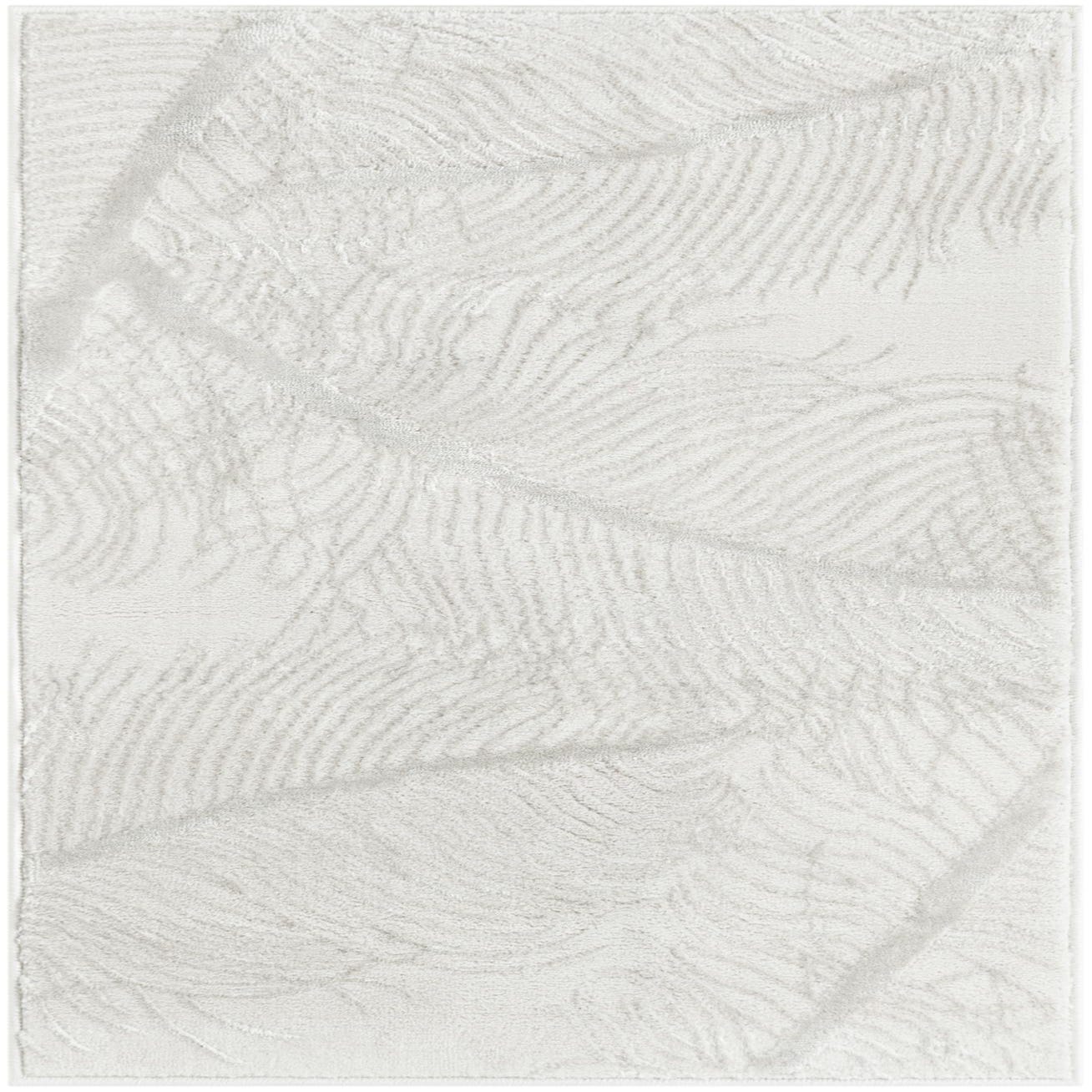 A 2x3 rectangular ivory and cream rug with a modern tropical leaf pattern and a high/low textured pile.