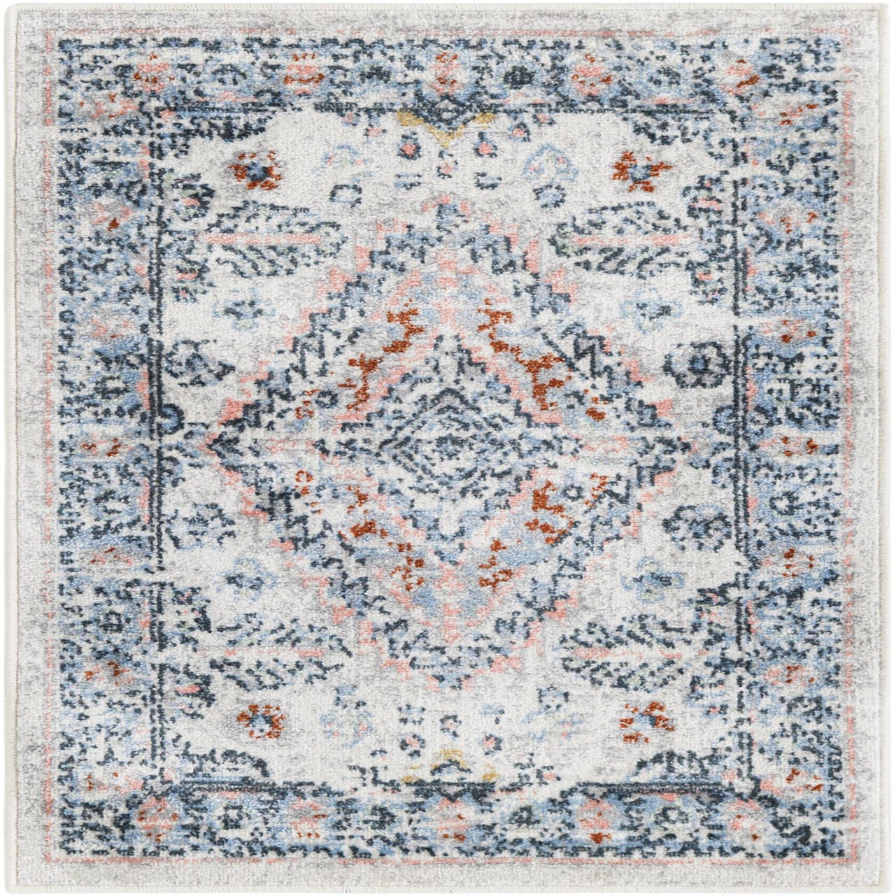 This versatile rug would complement a variety of interior design themes, from modern minimalist spaces that benefit from a touch of warmth and pattern, to more eclectic or bohemian environments where its soft colors and classic motifs can add depth and character. Its small size makes it perfect for use in entryways, beside the bed, or in a bathroom, providing a soft touch underfoot where it's most appreciated.