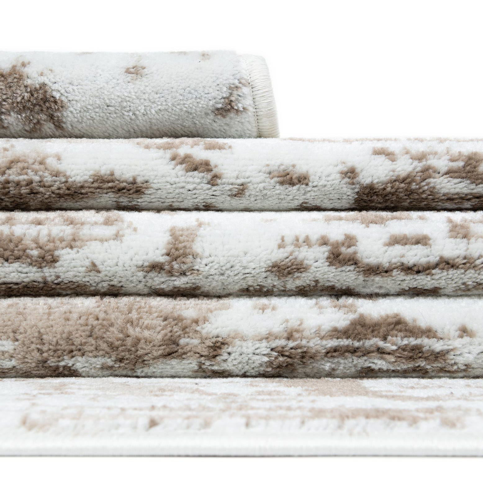 With its neutral color palette, this rug is particularly well-suited for contemporary and minimalist interiors, seamlessly complementing a range of color schemes and furniture styles. It could be an elegant addition to a home office, where it can anchor a workspace without overwhelming it, or it might serve as a soft landing spot in an entryway. The understated pattern is conducive to settings that require a touch of sophistication without drawing too much attention.