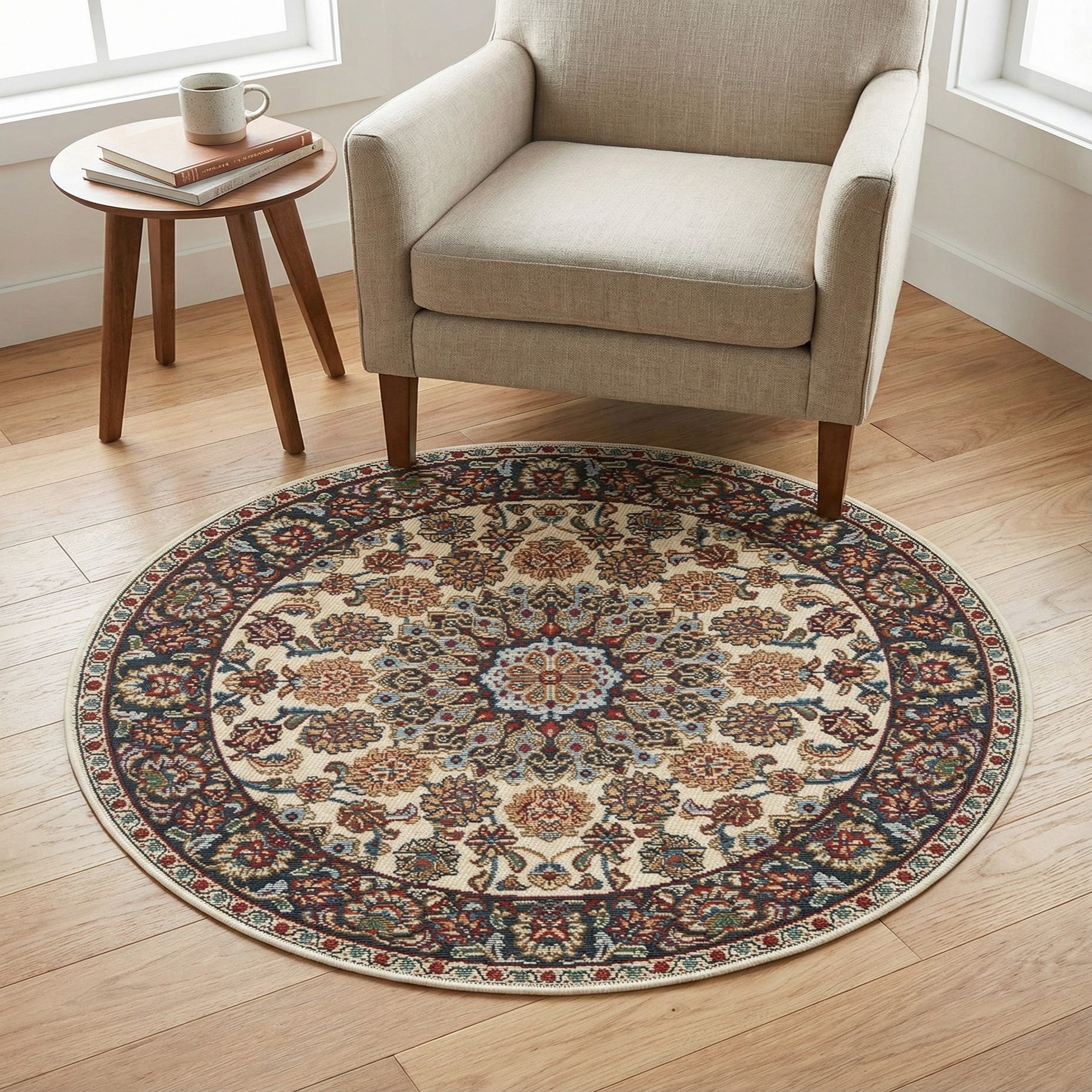 3' 3 x 3' 3 Washable Traditional Indoor / Outdoor Round Rug