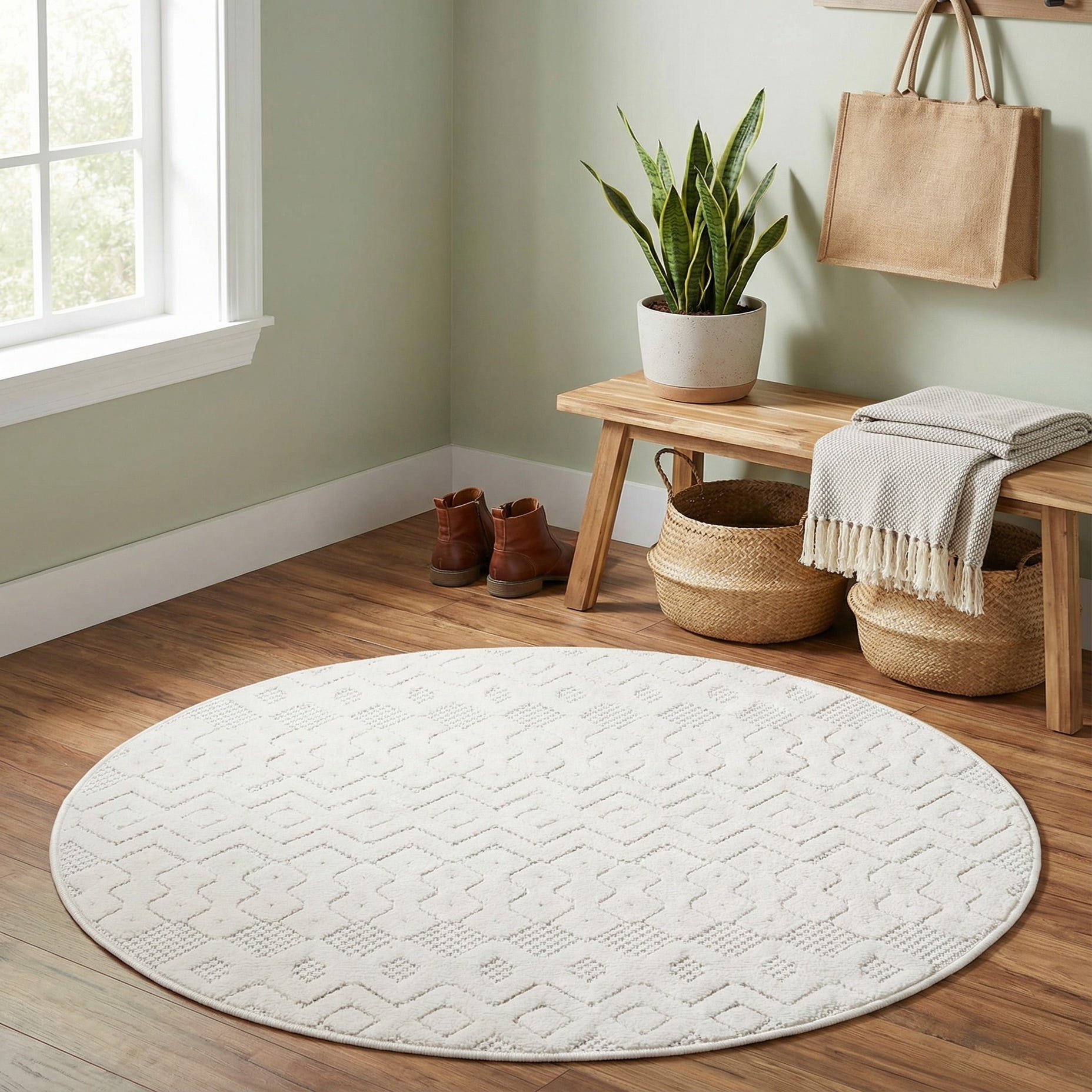 3' x 3' Washable Trellis Textured Indoor / Outdoor Round Rug
