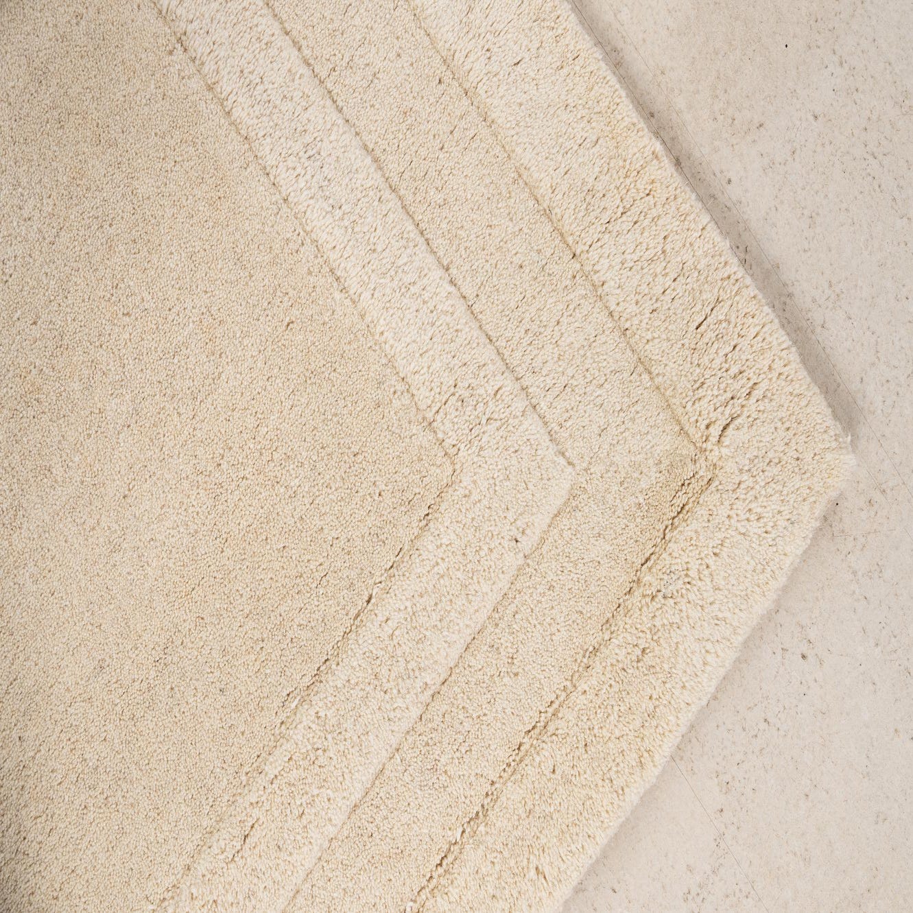 A 3x5 rectangular ivory wool rug with a subtle raised border pattern, perfect for an indoor living space.