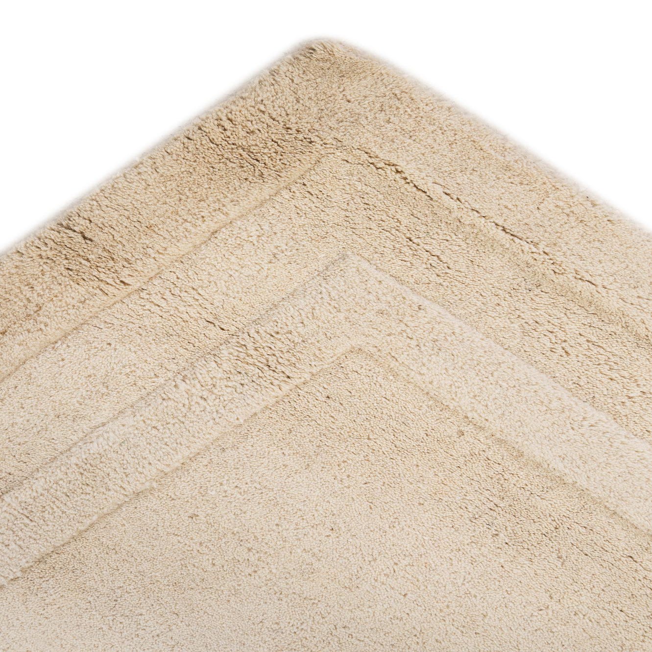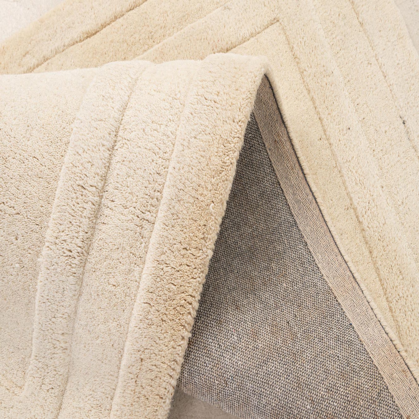 A soft, rectangular 3x5 ivory wool rug with a subtle raised border pattern, perfect for an indoor living space.