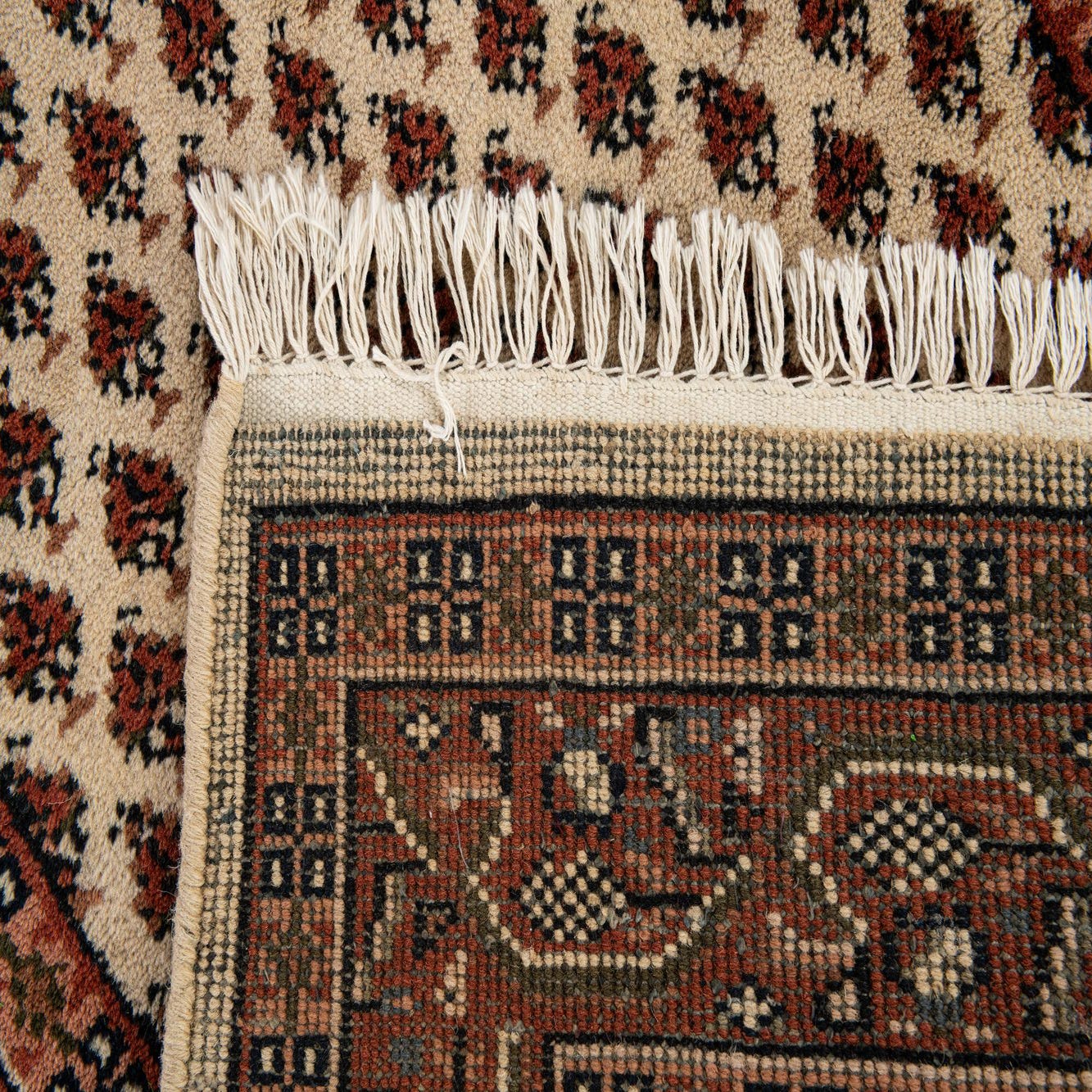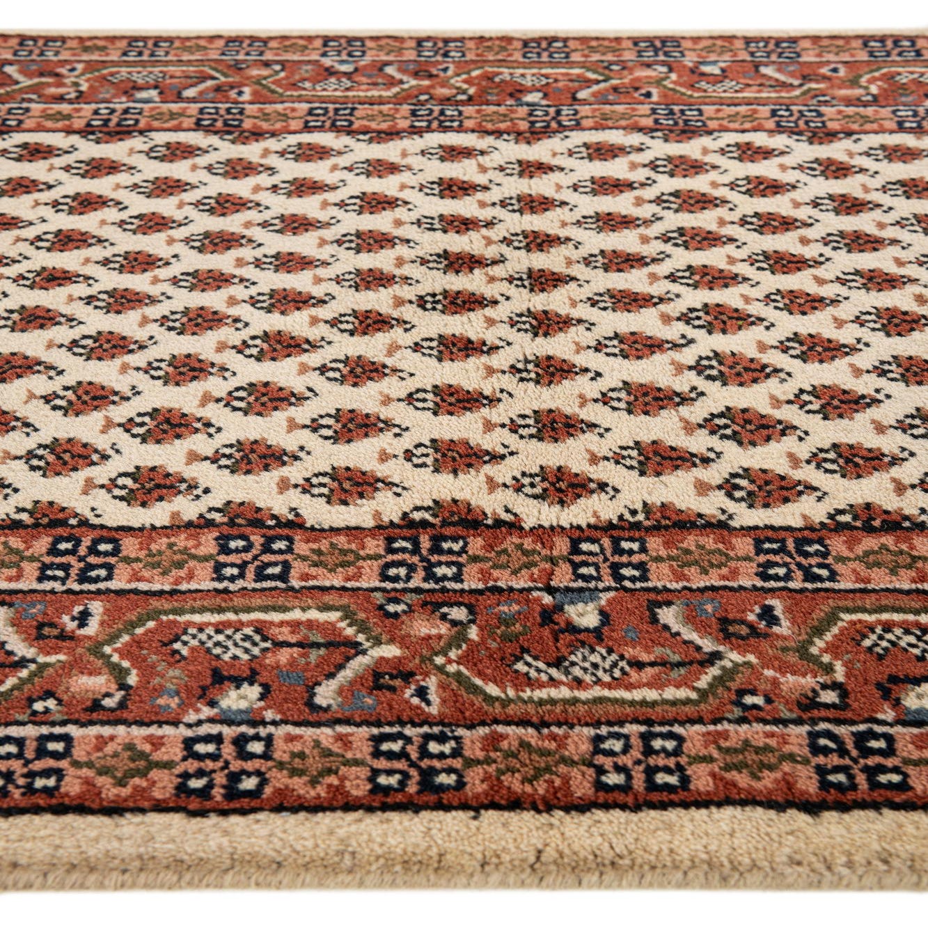 A 3x5 rectangular ivory and terracotta wool rug with a traditional Oriental pattern and fringed edges.