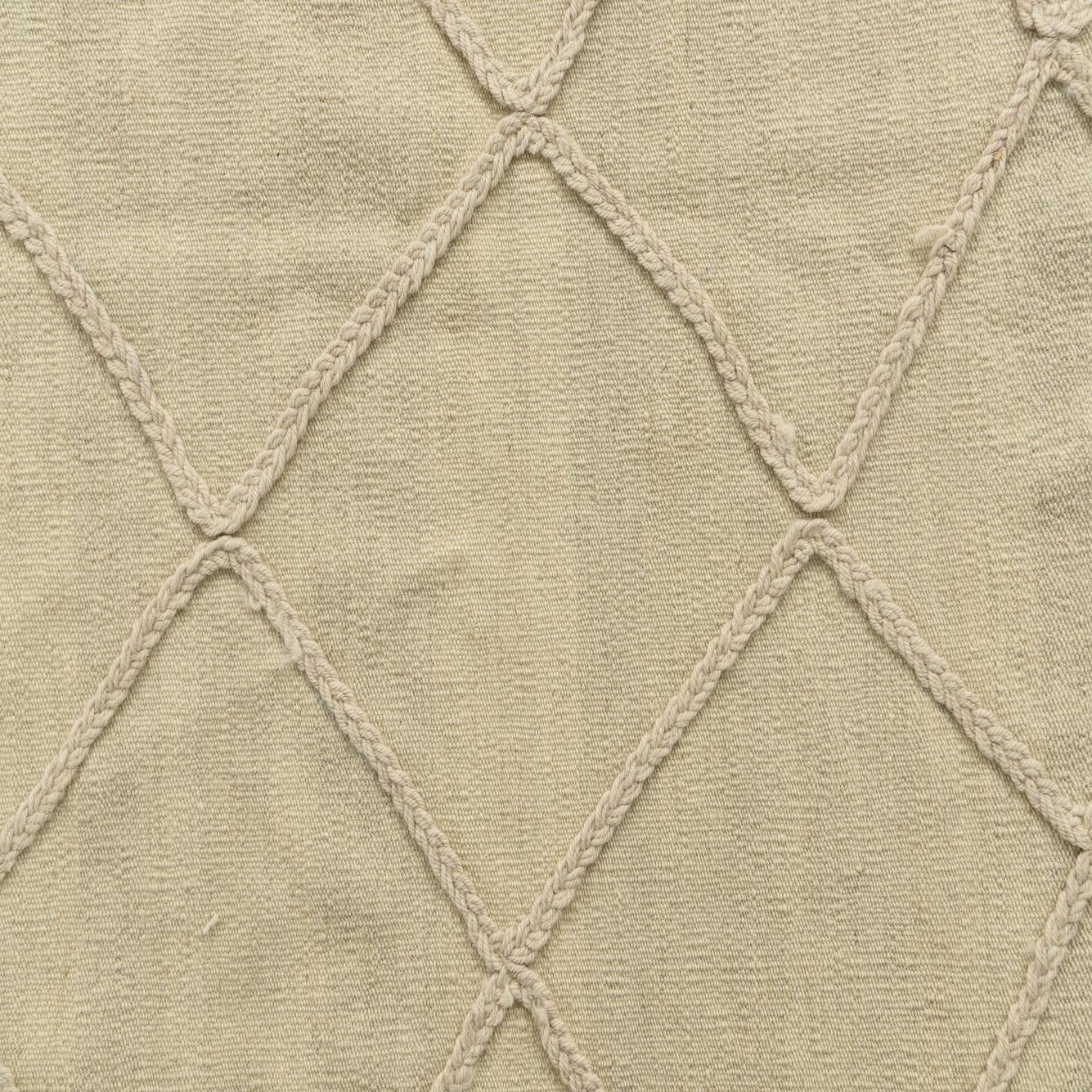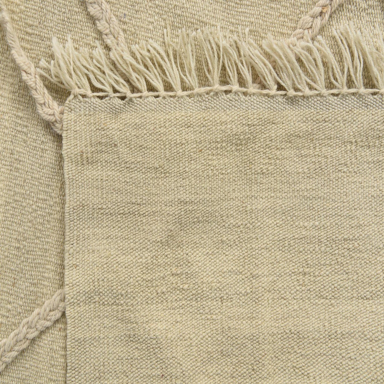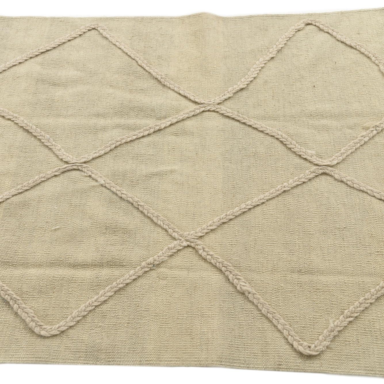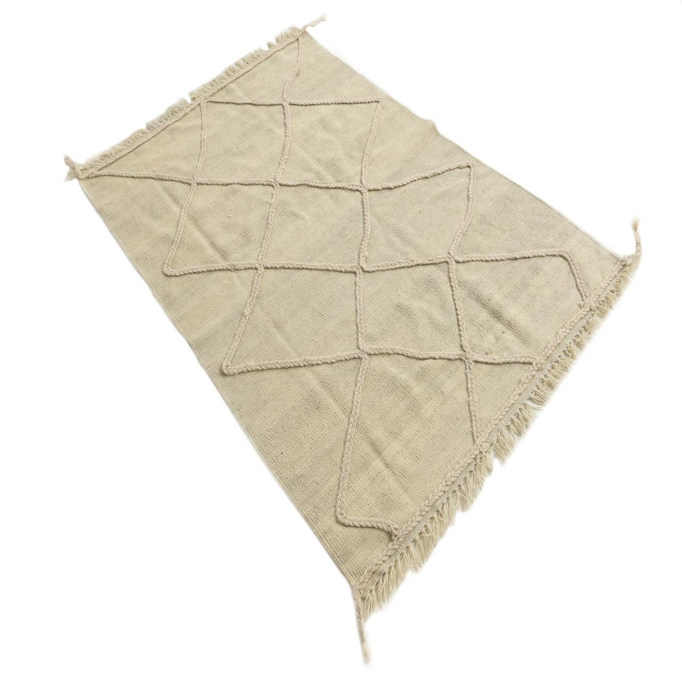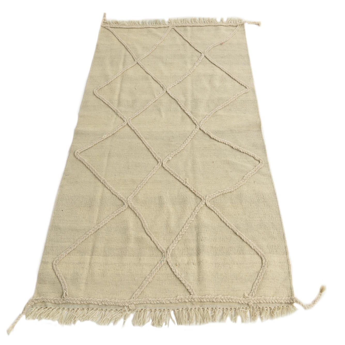 A 3x5 rectangular ivory wool shag rug with a raised braided diamond pattern and fringe.