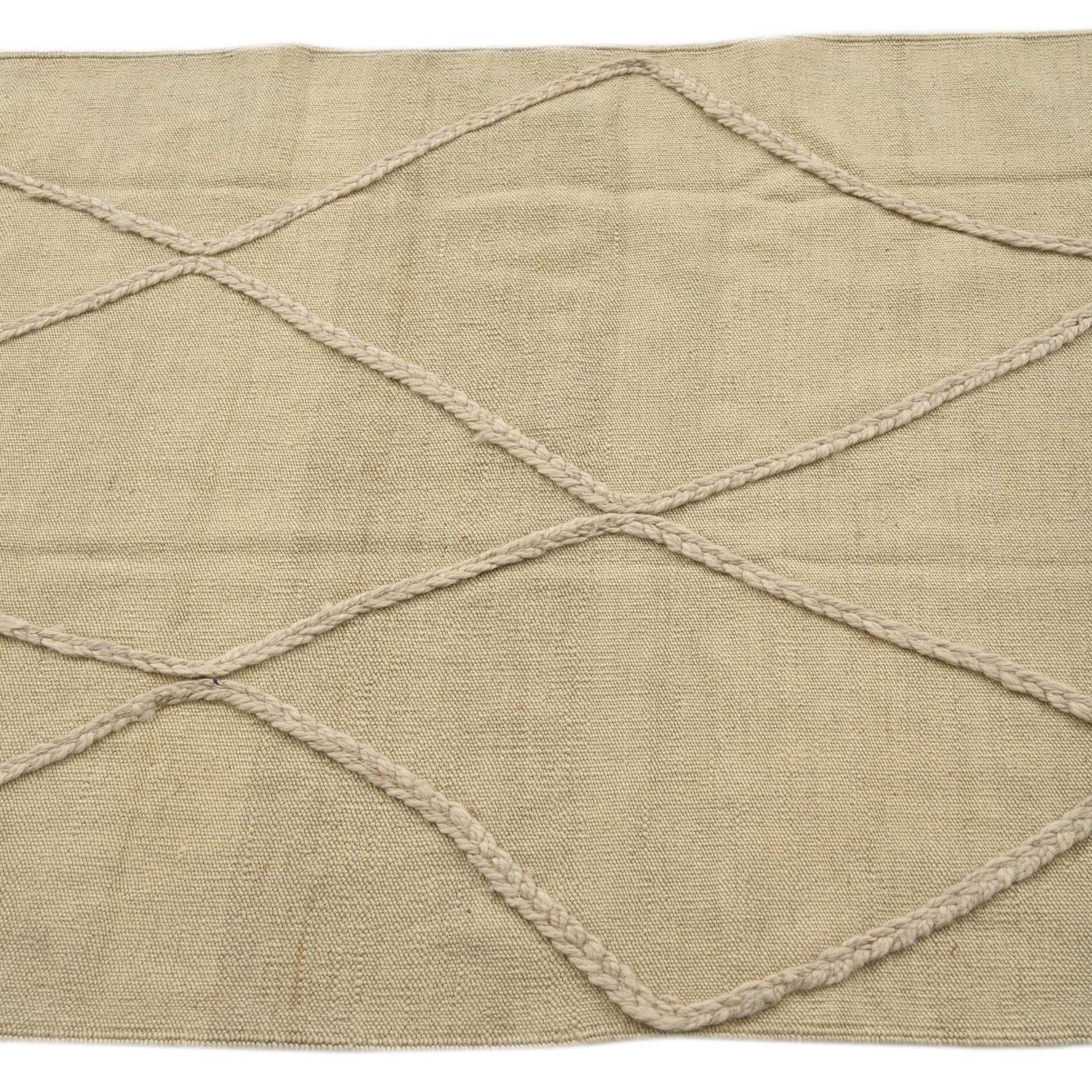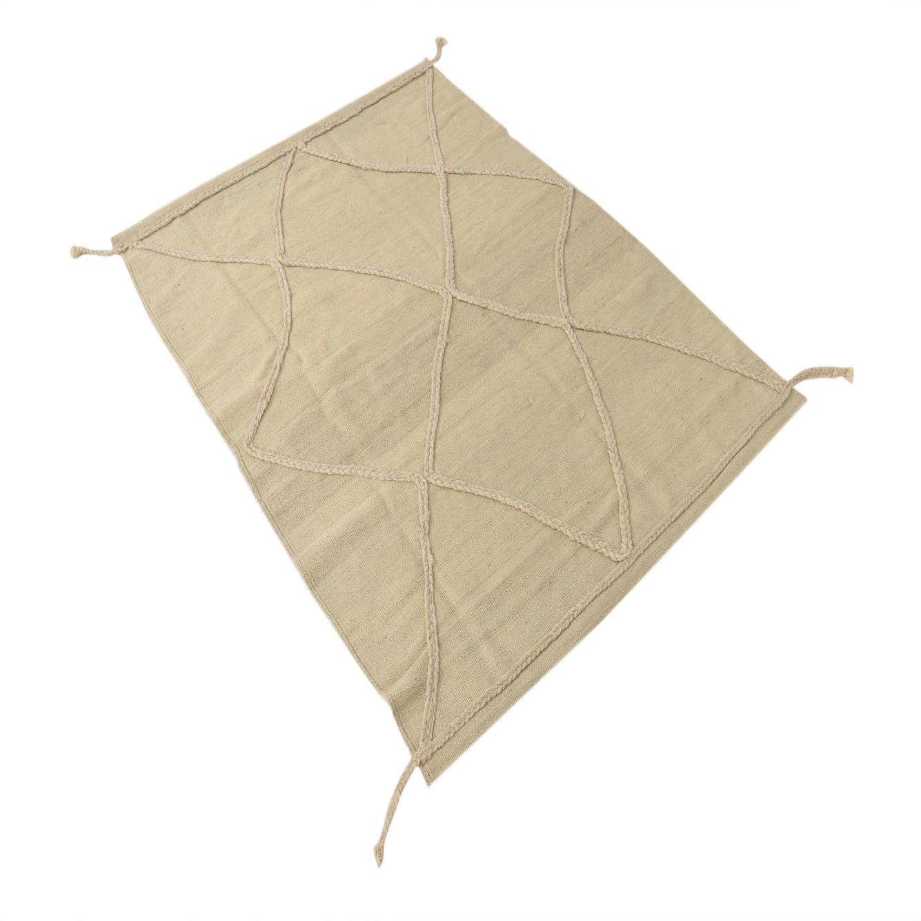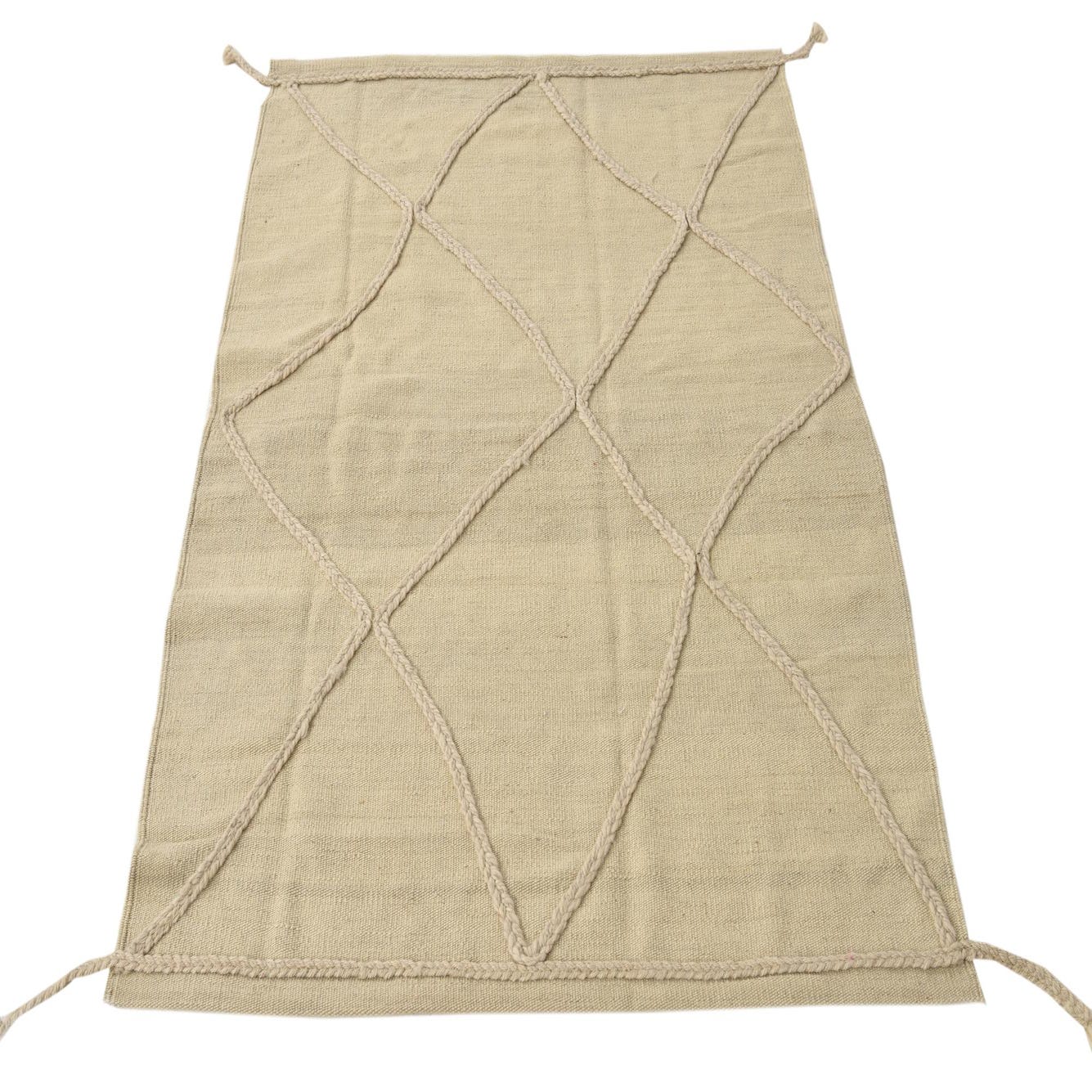 A 3x5 rectangular ivory wool shag rug with a raised braided diamond pattern, suitable for various indoor spaces.
