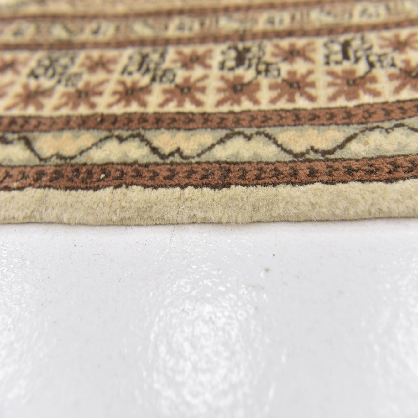 A 3x5 rectangular ivory wool rug with a traditional tribal medallion pattern in brown and cream, featuring fringe.