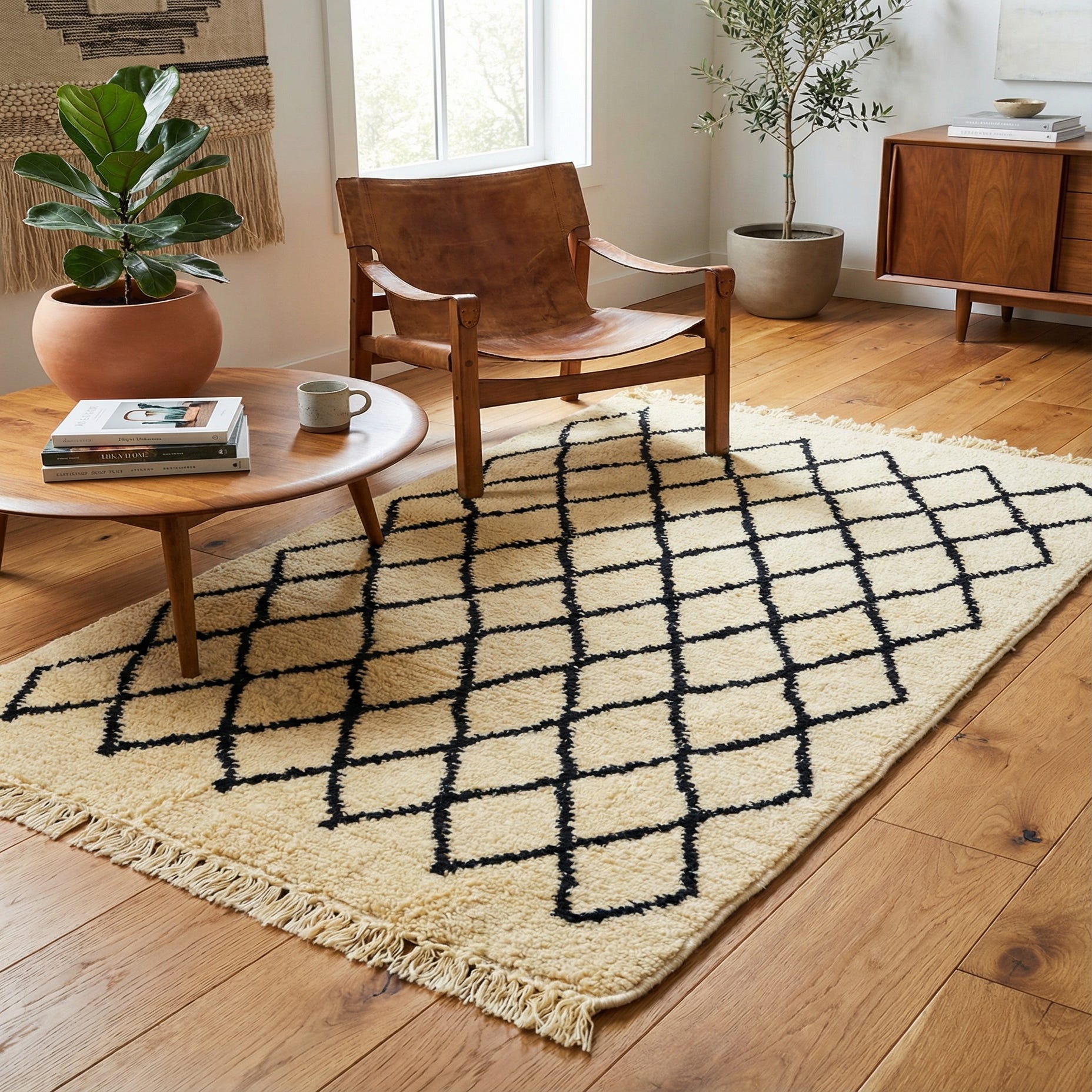 A crisp, high-contrast color palette of ivory and black lends this rug the versatility to complement a multitude of interior styles. From modern minimalist spaces where it can serve as a striking focal point, to more eclectic settings where it can anchor a mix of textures and patterns, this rug has the capacity to enhance and define a space.