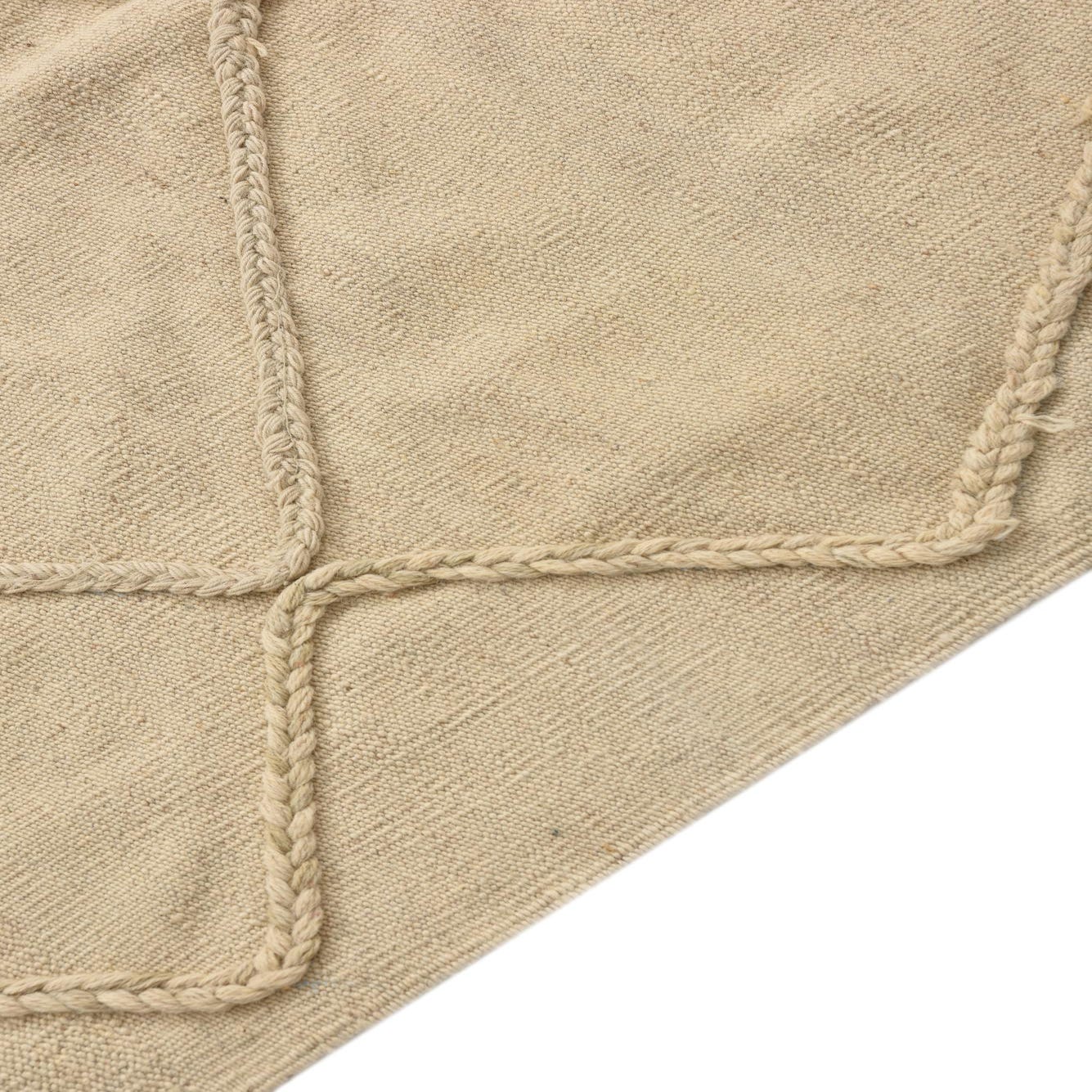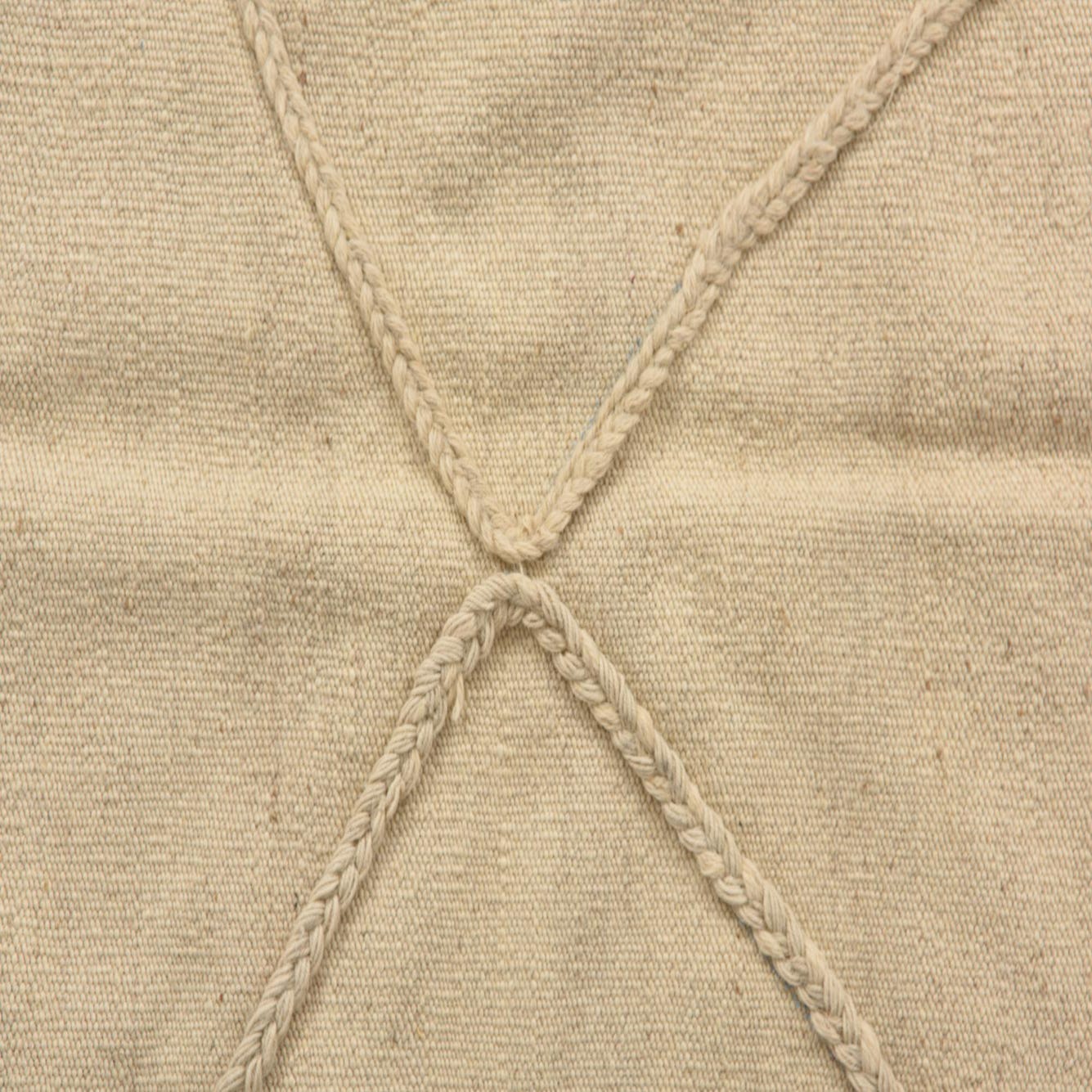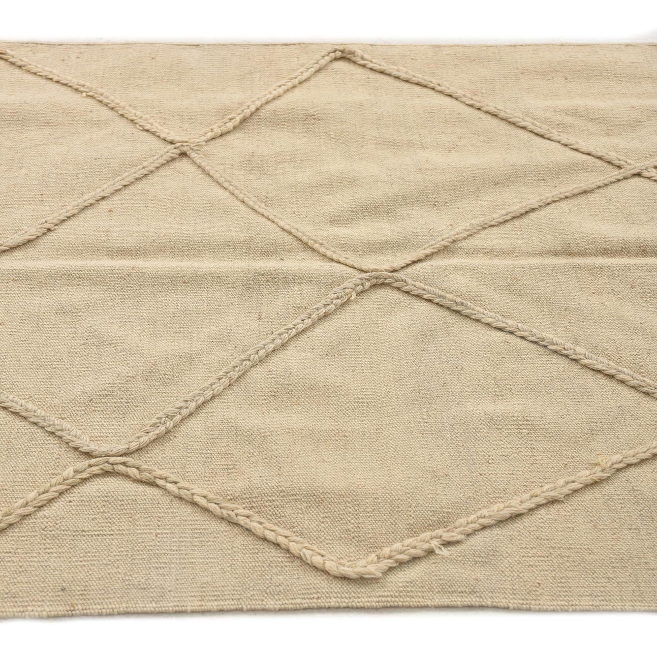 A 3x5 rectangular ivory wool shag rug with a raised braided diamond pattern and fringed edges.