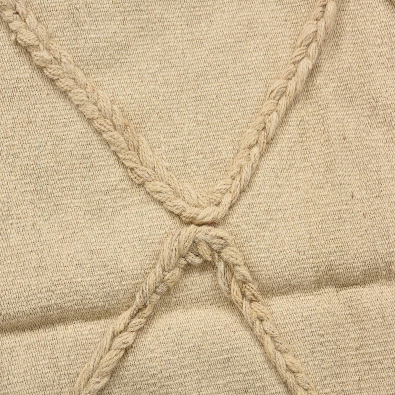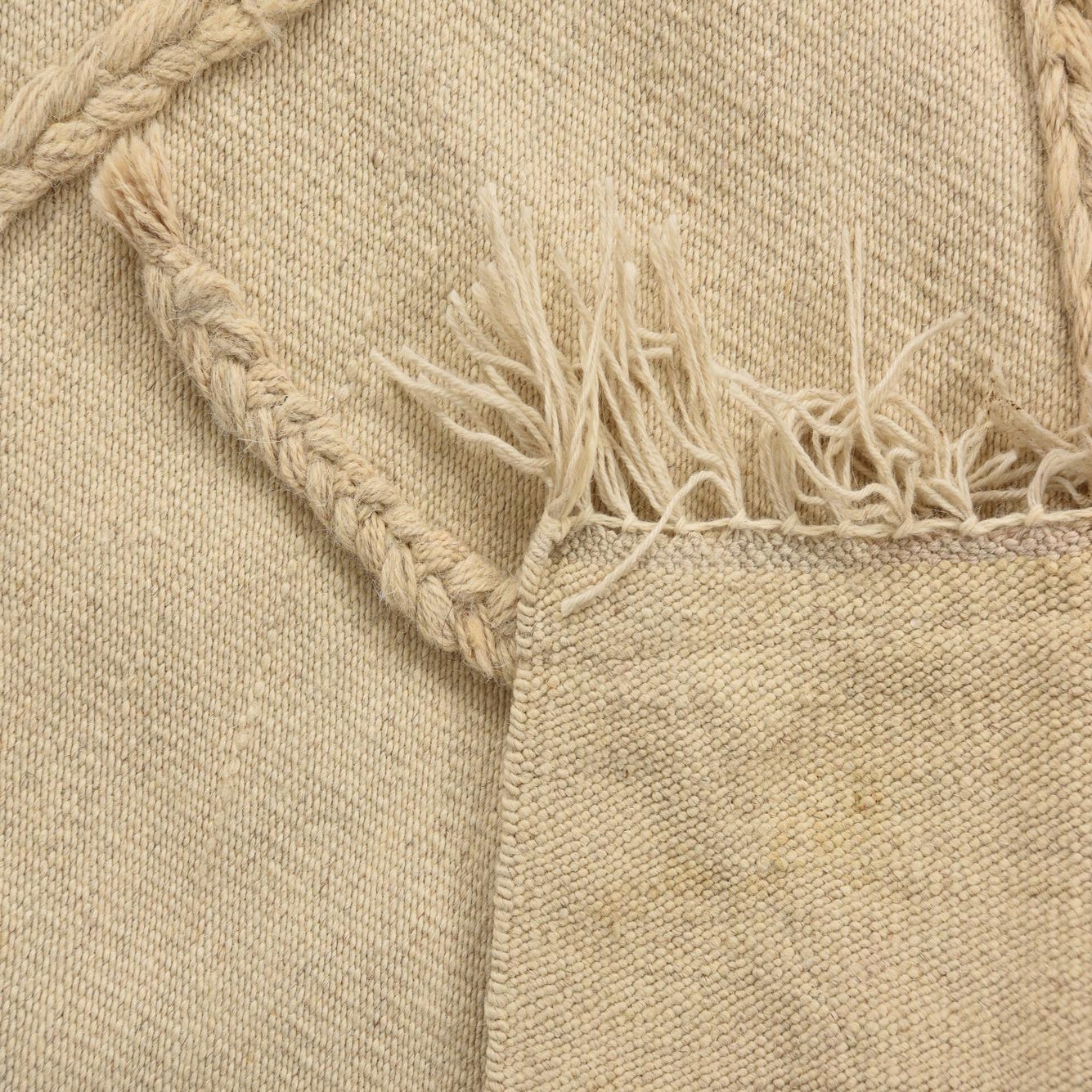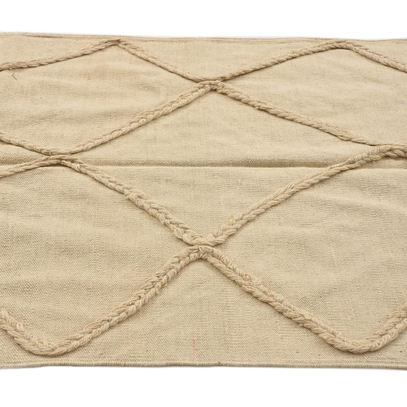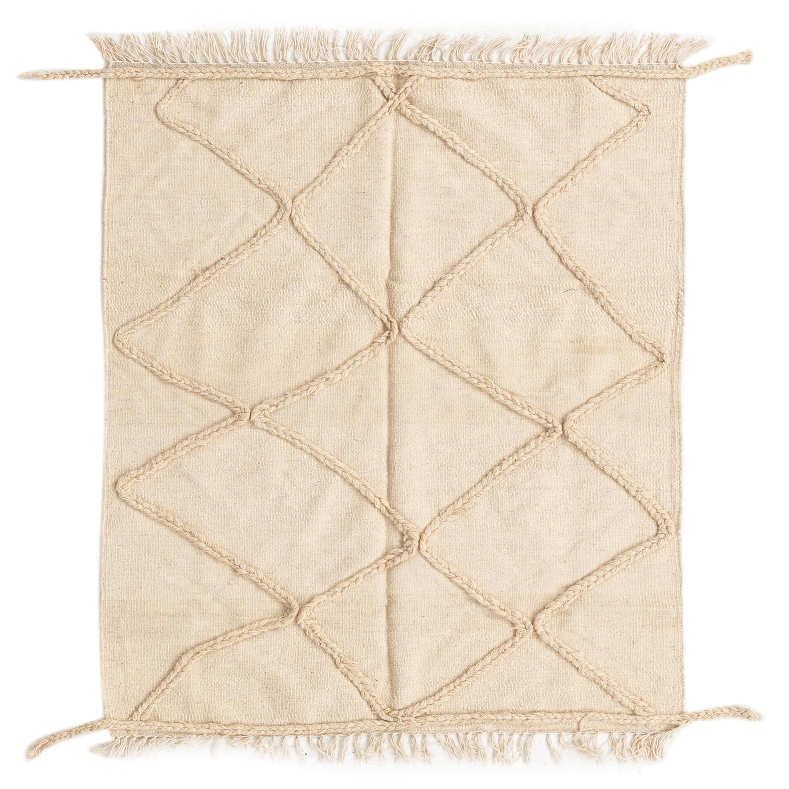 A 3x5 rectangular ivory wool shag rug with a raised braided diamond pattern and fringe.