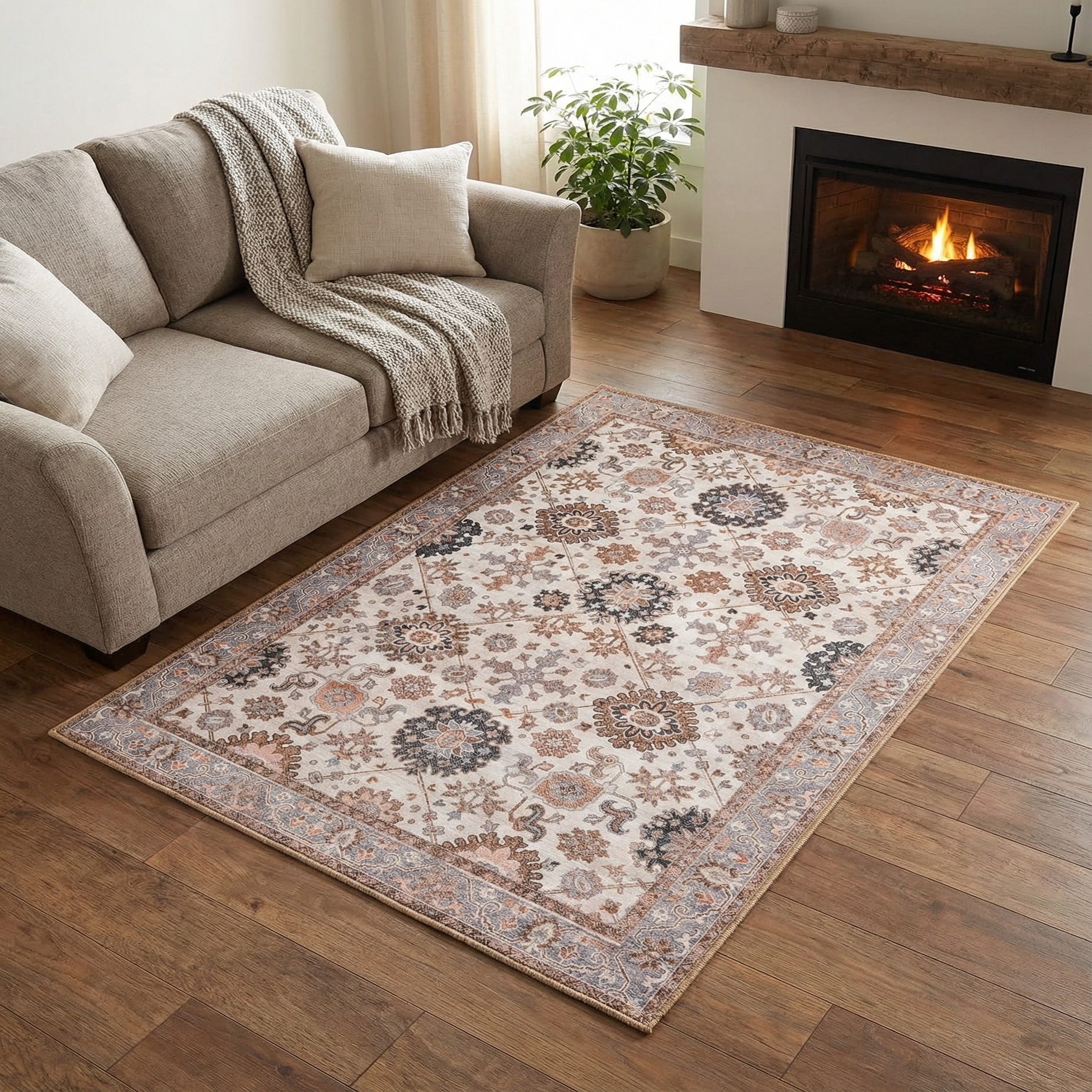 This Timeless collection rug will easily complement a variety of interior design themes, from traditional spaces that capitalize on its classic patterns to more contemporary or transitional settings where its nuanced color palette can bring warmth and depth. It is well-suited for placement in living rooms under coffee tables, in office spaces for a touch of sophistication, or even in entryways where its stain-resistant properties are particularly beneficial.