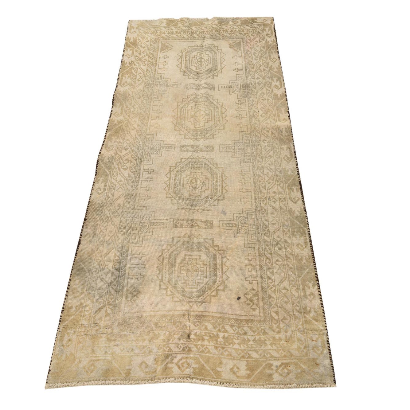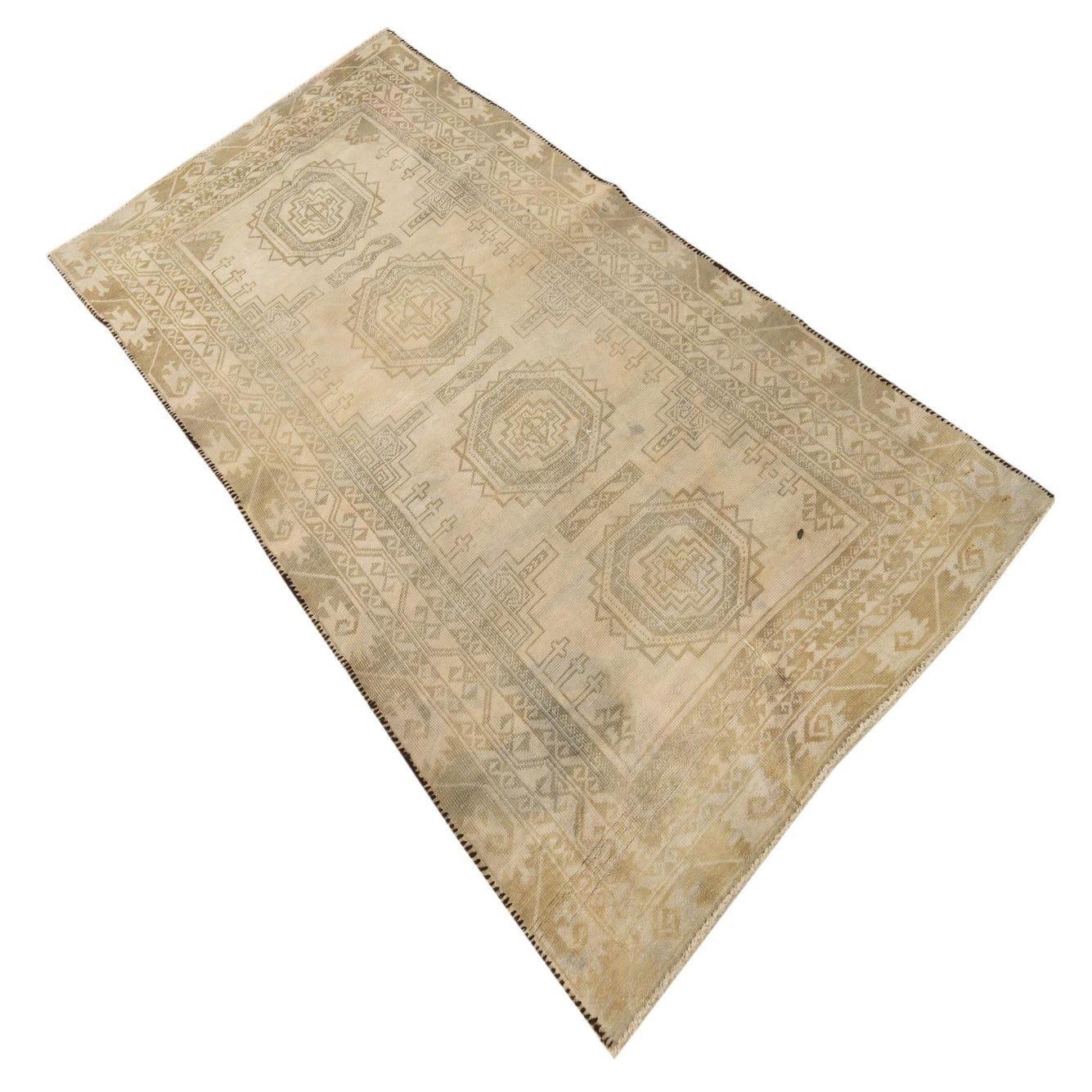 A 3x5 rectangular Ultra Vintage wool rug in ivory and cream with a subtle Persian geometric pattern.
