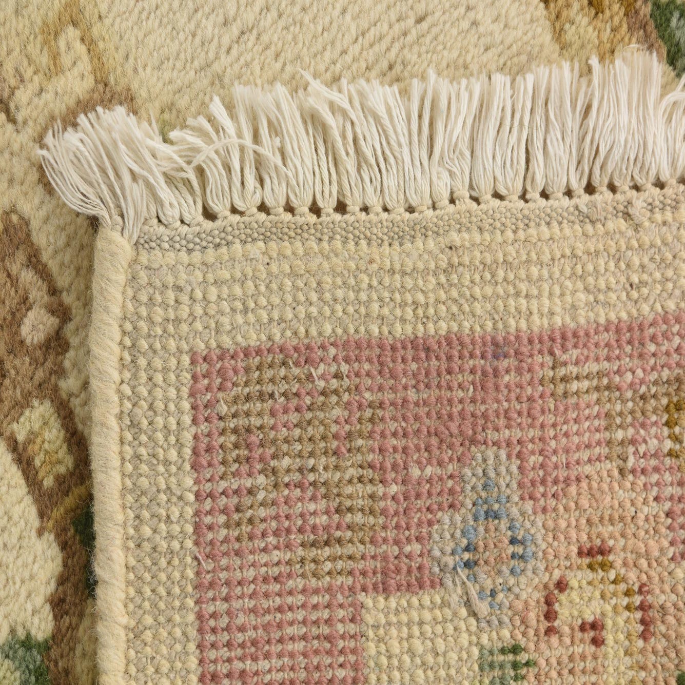 Primary color is Ivory. Colors in this rug include: Ivory, Brown, Pink, Green, Blue.
