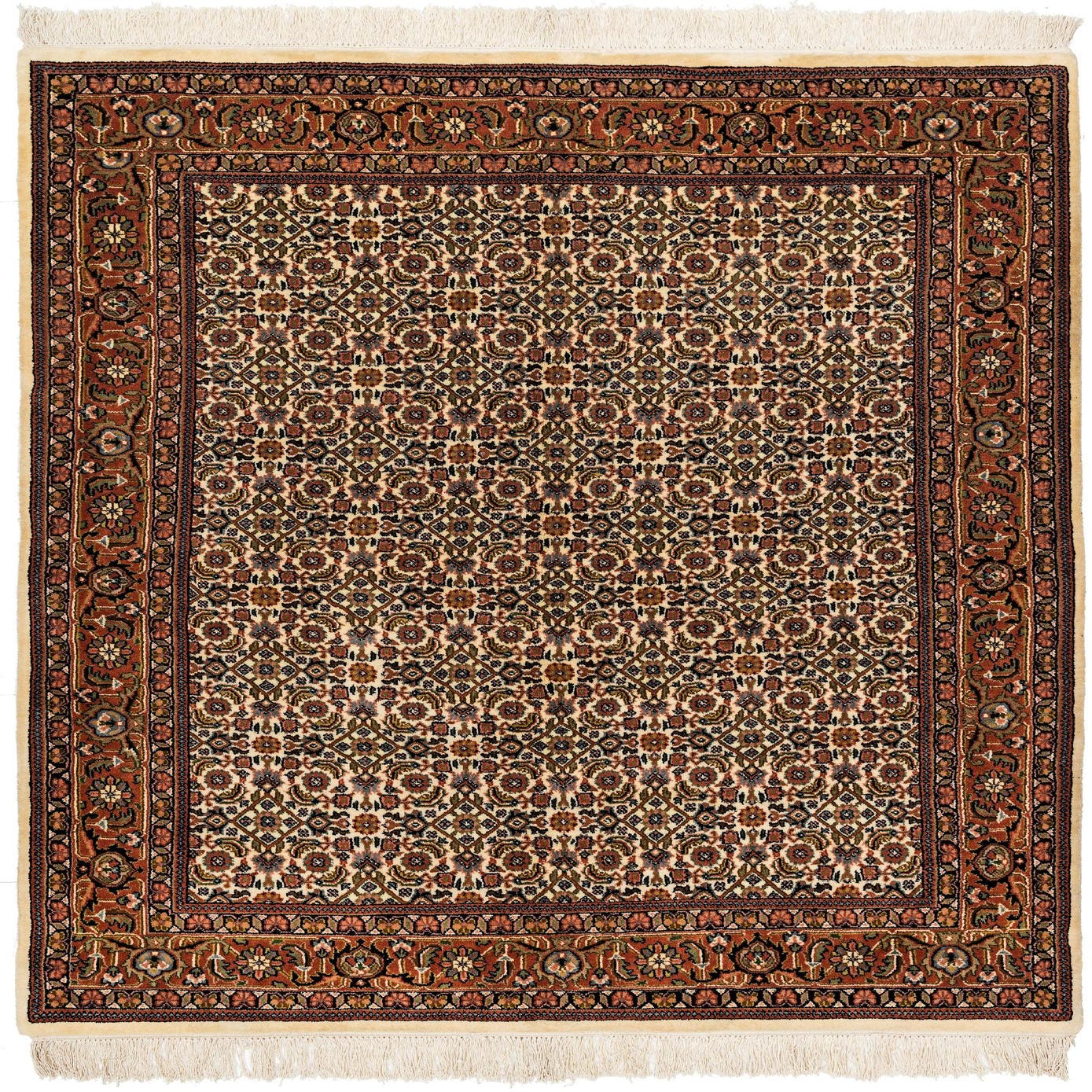 A 4x6 rectangular Bidjar rug featuring a traditional Oriental pattern in ivory, cream, and white with a detailed rust-colored border.
