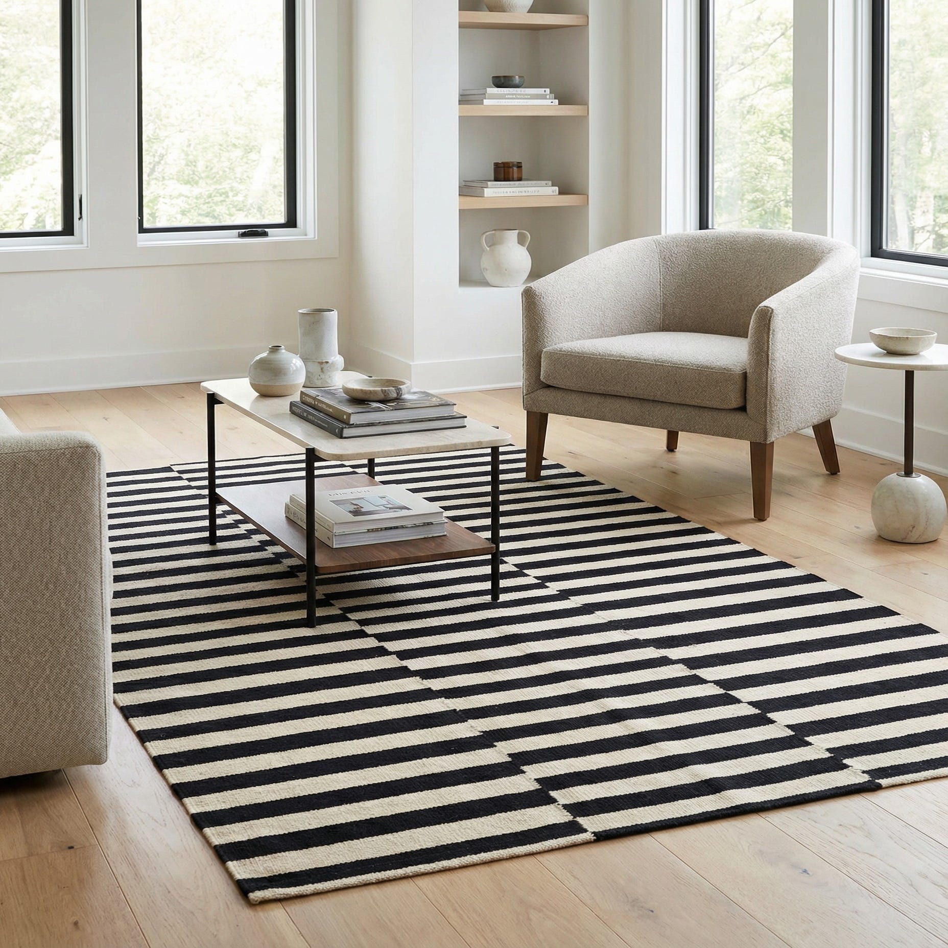 Primary color is Ivory. Colors in this rug include: Ivory, Black.