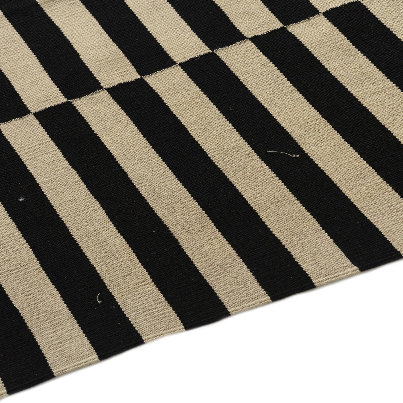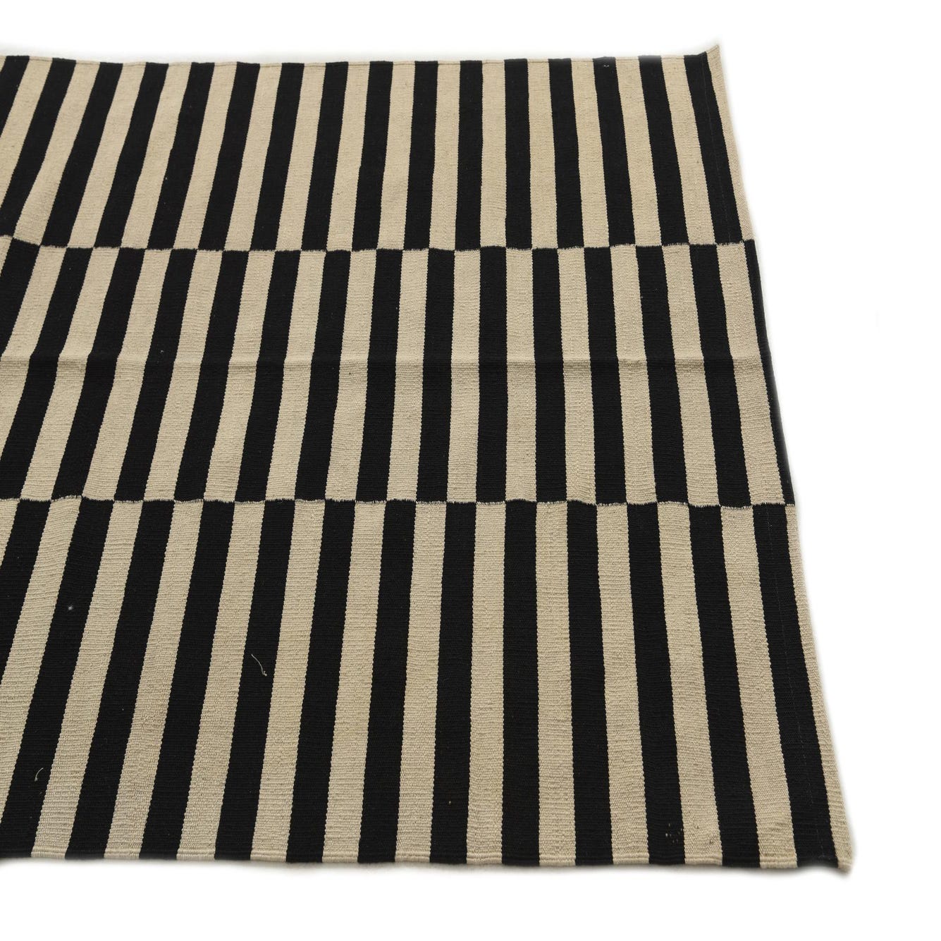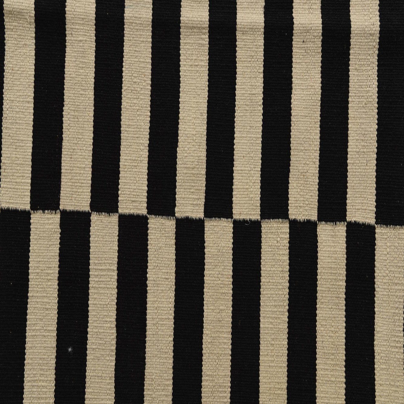 A 4x6 rectangular Kilim Modern wool rug featuring alternating black and ivory horizontal stripes in a tribal pattern.