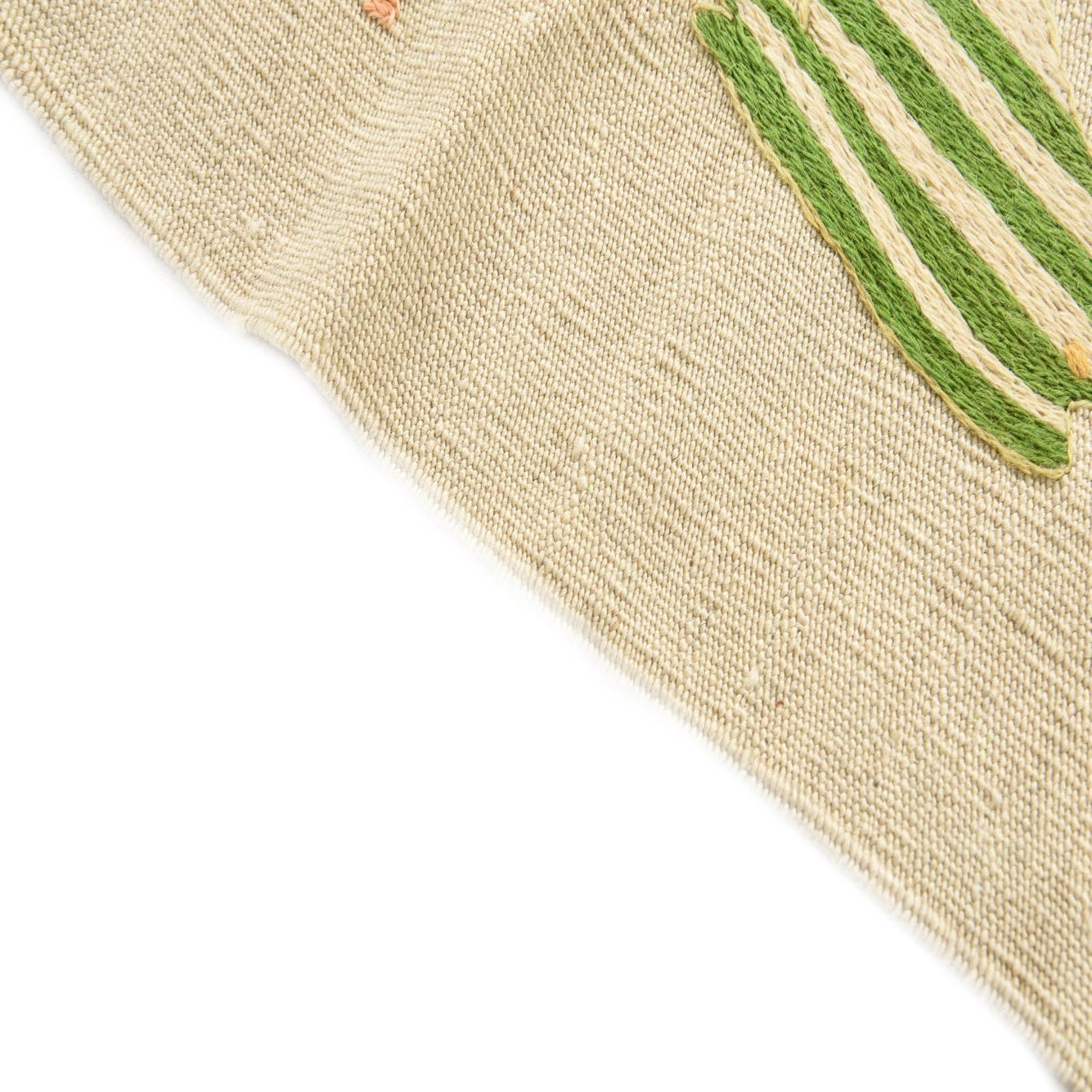 The flatweave construction of this rug presents a low pile, making it an excellent option for high-traffic areas or under furniture. The Kilim Suzani would effortlessly complement interiors that lean towards bohemian, eclectic, or cottage styles, injecting character and warmth into the space. It could serve as a focal point in a minimalist setting or as an artful complement in a room with natural wood elements and a neutral color scheme. Due to its versatile design, this rug can also enhance a coastal or beach-inspired décor by echoing the playful essence of a seaside retreat.