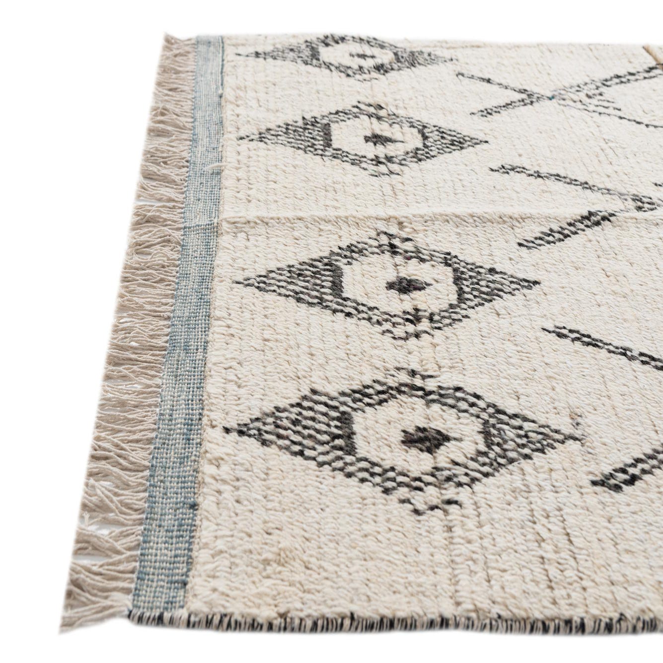 Primary color is Ivory. Colors in this rug include: Ivory, Black.