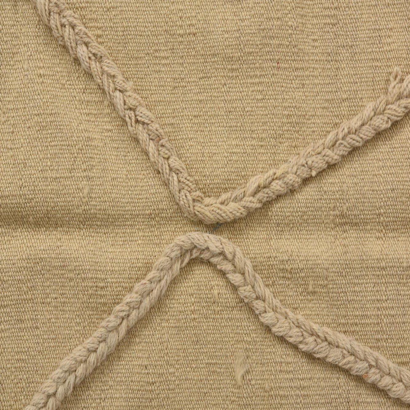This Moroccan Collection rug offers a simplistic yet timeless geometric diamond motif, hand knotted using 100% wool, ensuring both durability and softness underfoot. With a 4x6 dimension, it features a tactile, high-low pile that adds a sense of depth to its pattern. The ivory background allows for the natural wool color of the linear design to stand out, lending the piece a gentle contrast without overwhelming the senses.