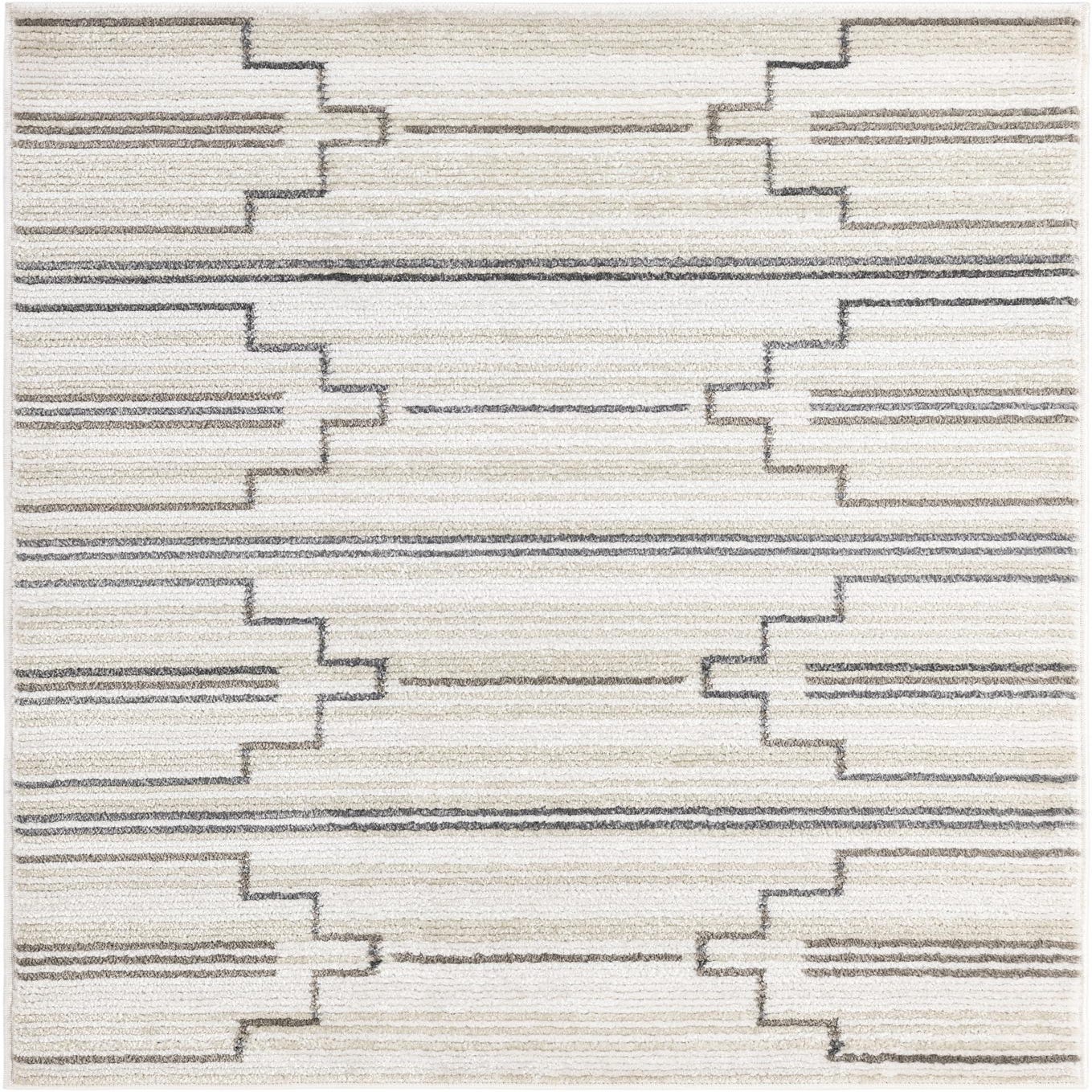 A 4x6 rectangular ivory and cream modern rug with a subtle textured pile and geometric striped pattern.