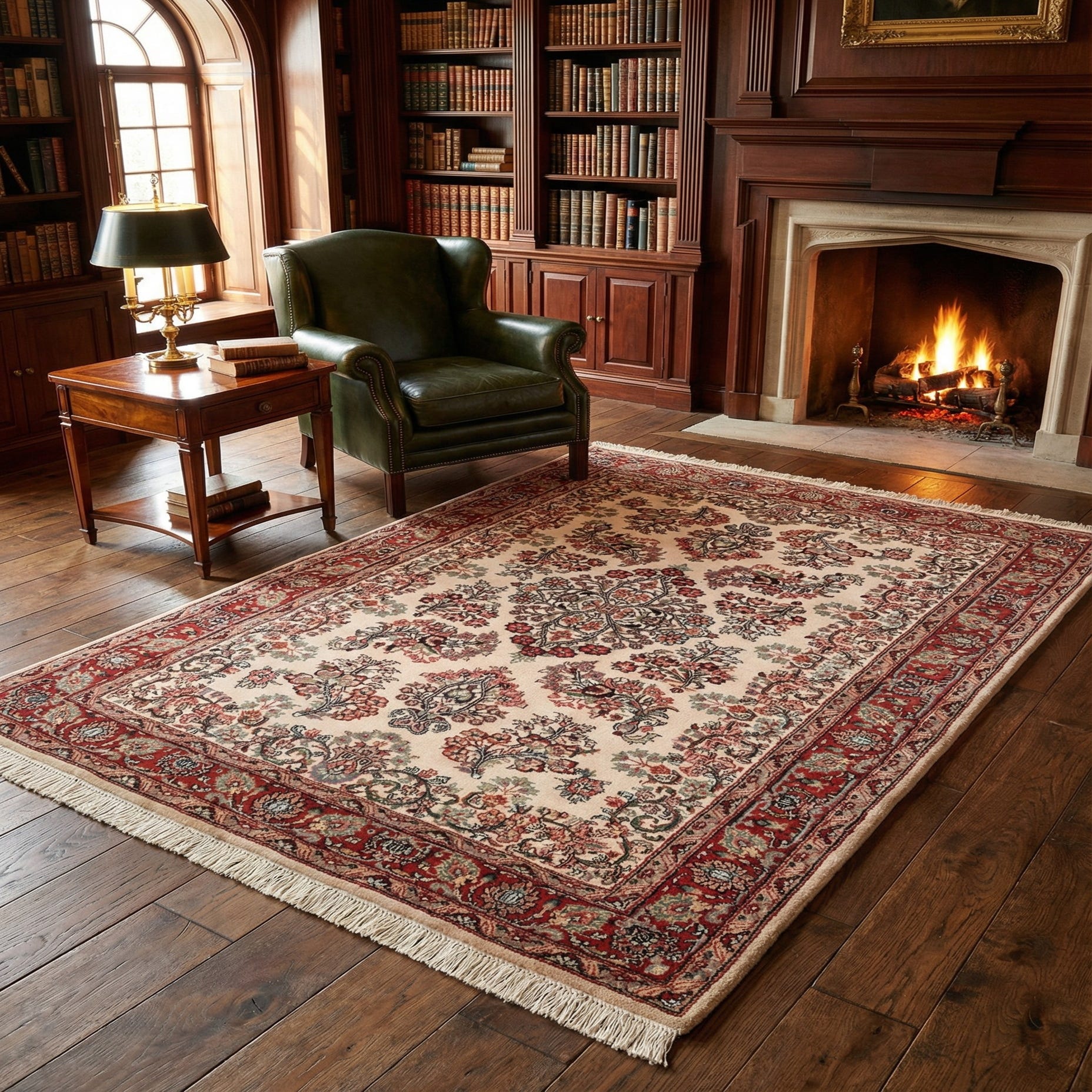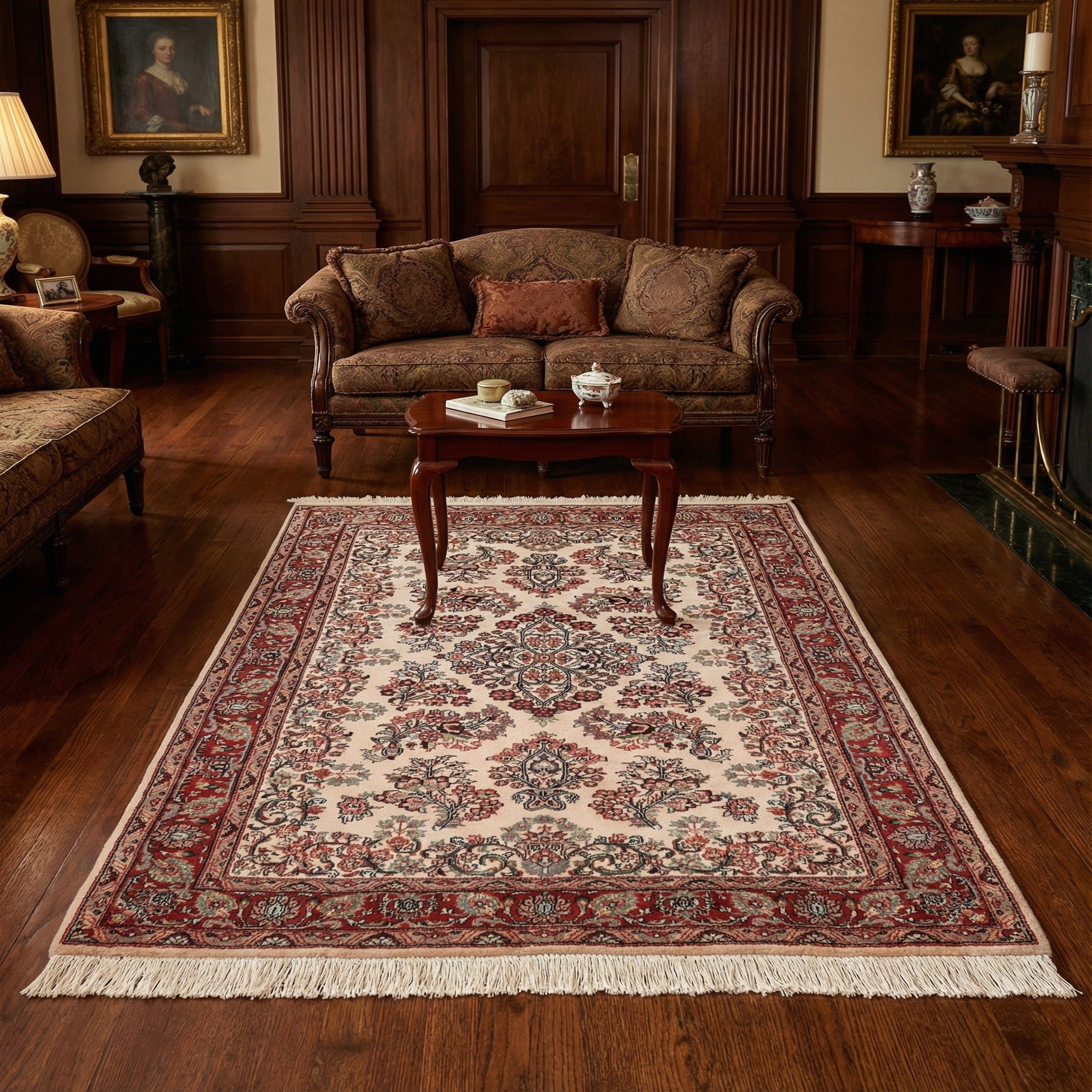 4' 5 x 6' Hand Knotted Sarough Wool Rug
