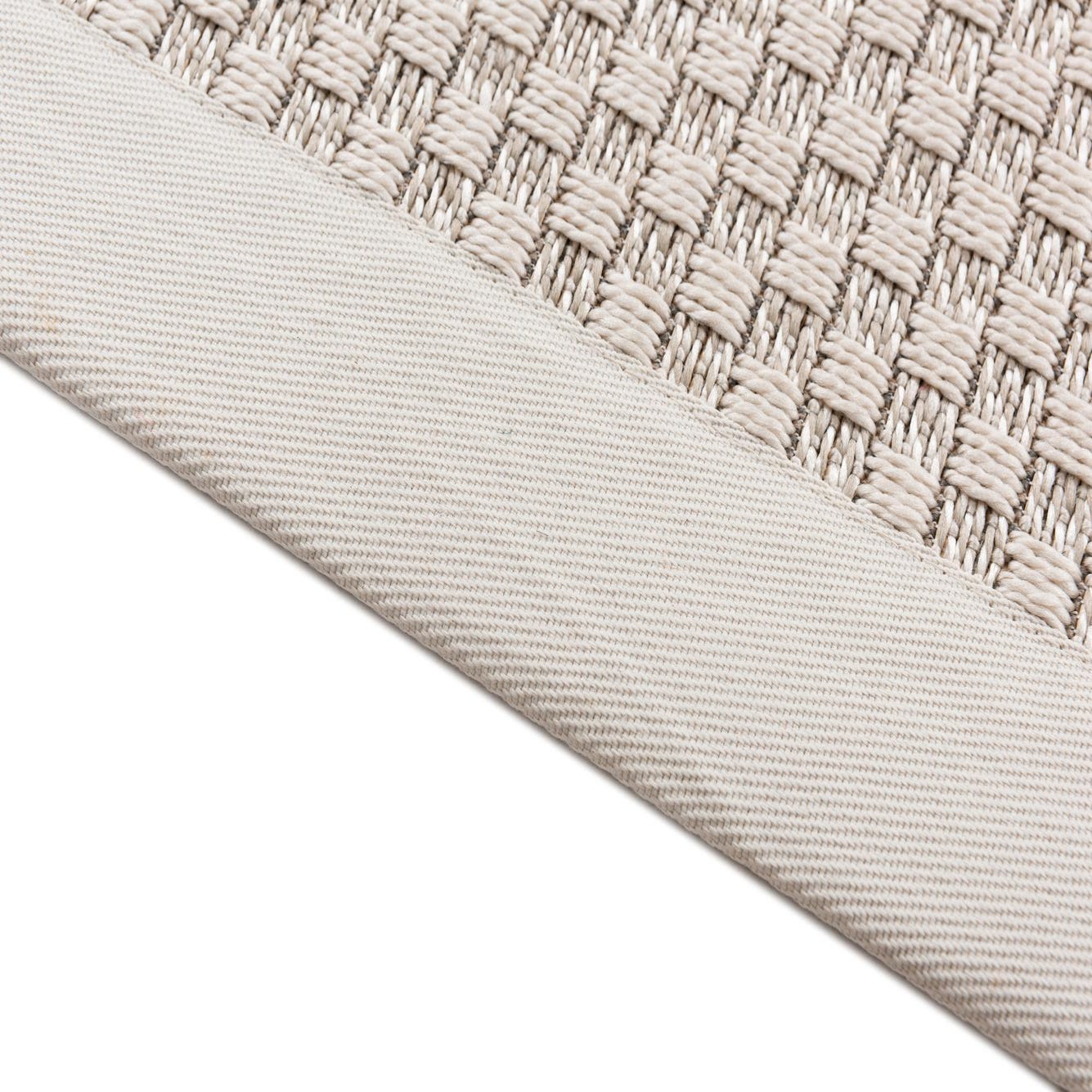 100% Natural Sisal. Handcrafted with a 2" cotton twill border and meticulously finished with non-slip backing.