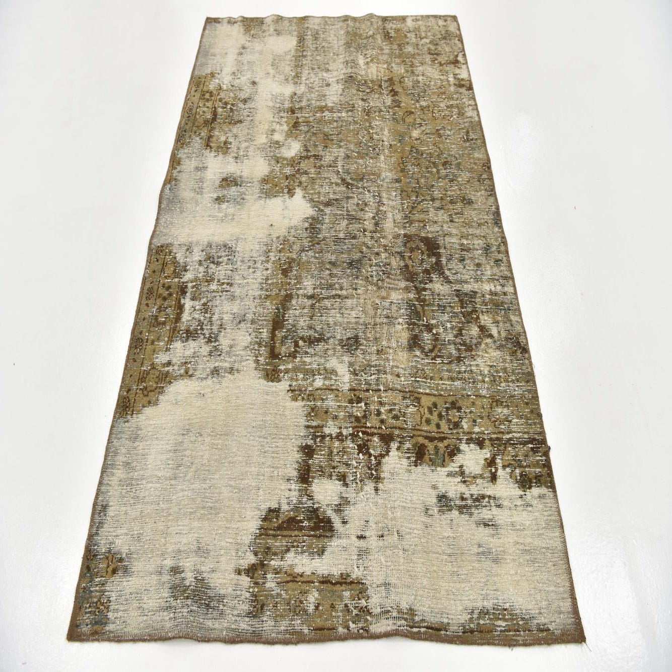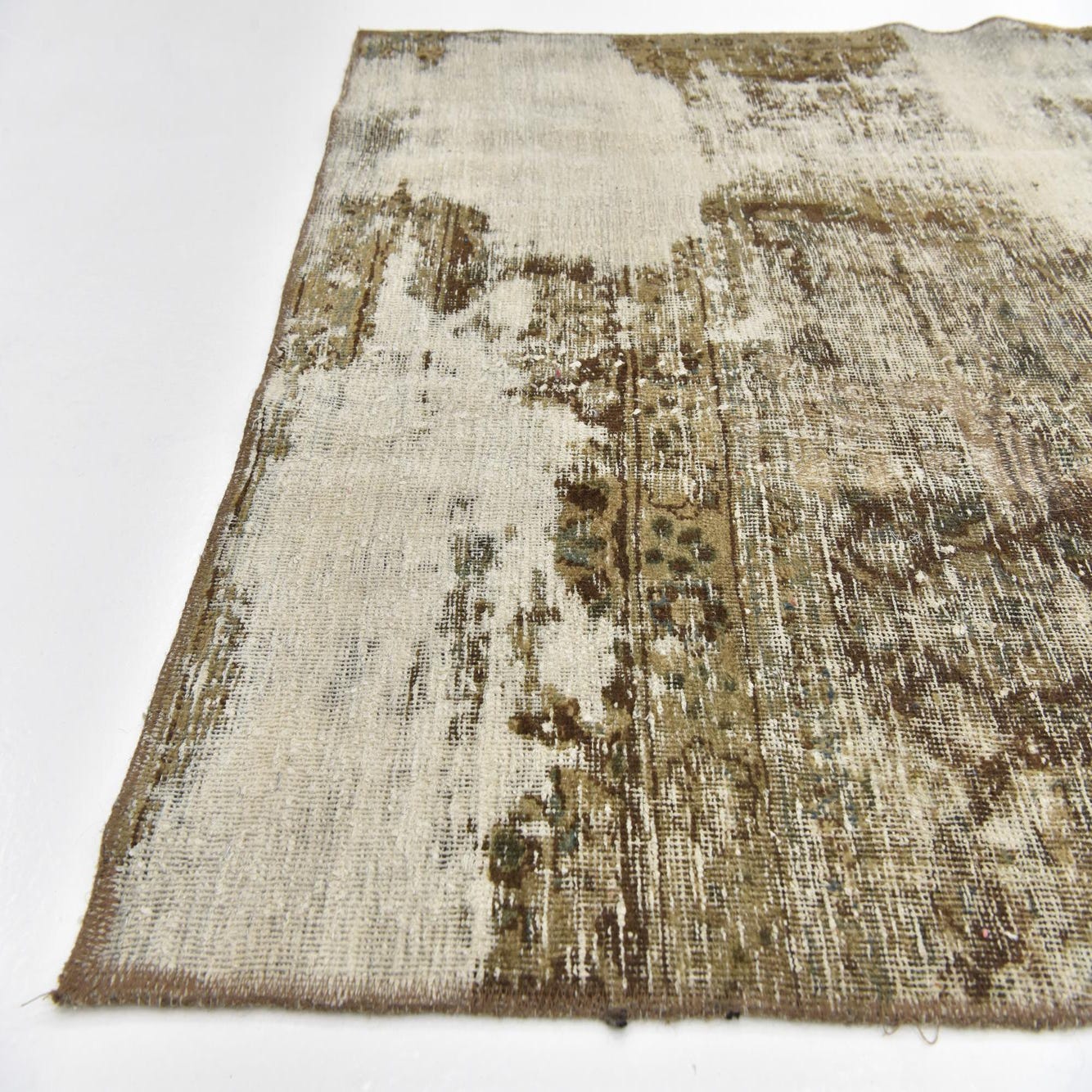 This Persian Ultra Vintage rug is an antique Persian Rug that has been washed, over-dyed, and then shaved down to a low pile. Look at the detail pictures to fully appreciate the uniqueness of this piece.