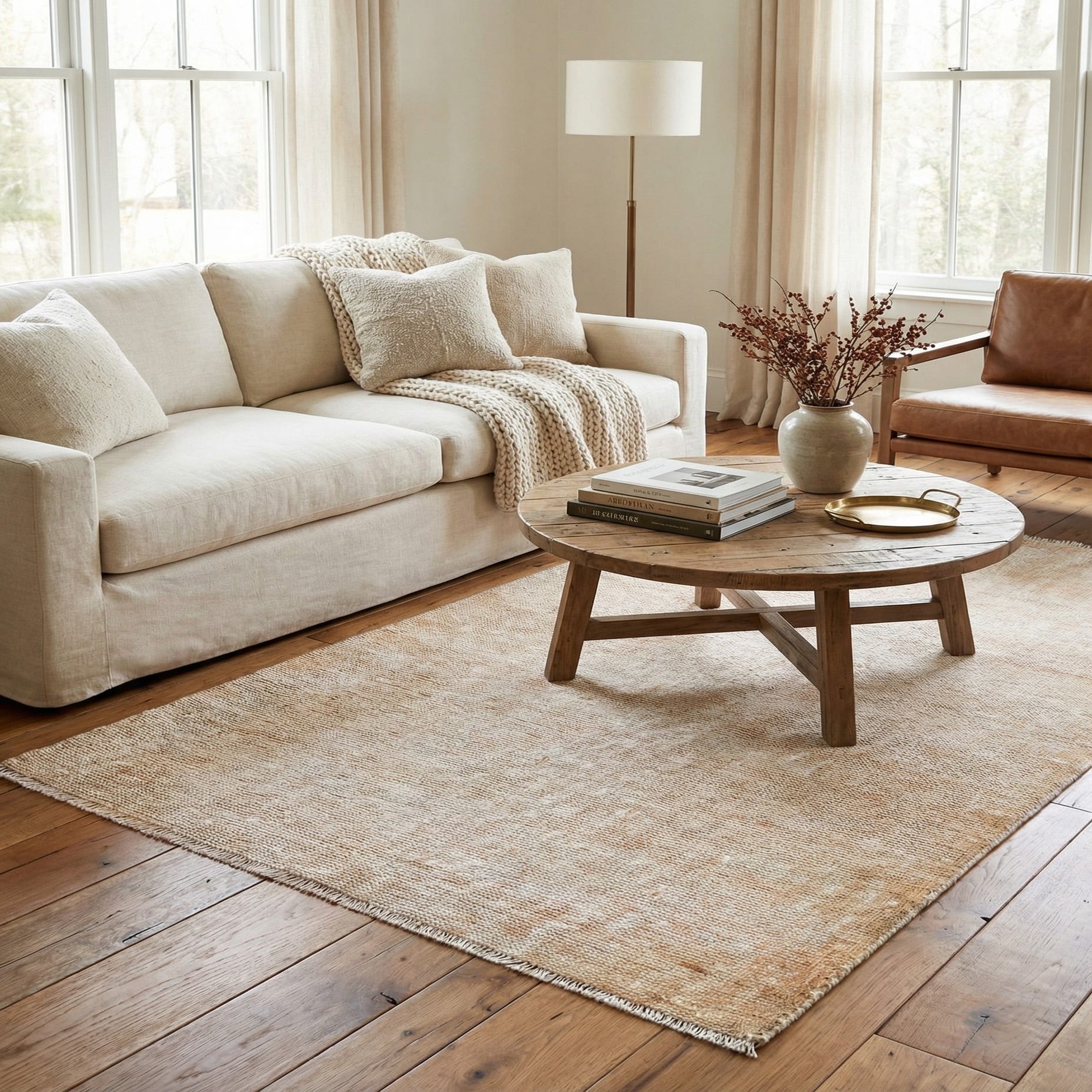 This rug would serve as an excellent foundation in a living room, offering a serene anchor for furniture and décor; or in a bedroom, where it can add warmth and comfort without overwhelming the space. Its simplicity also allows for layering with bolder patterns and colors should one wish to create a more dynamic interior. The understated elegance of this rug ensures it will be a timeless addition to any home.