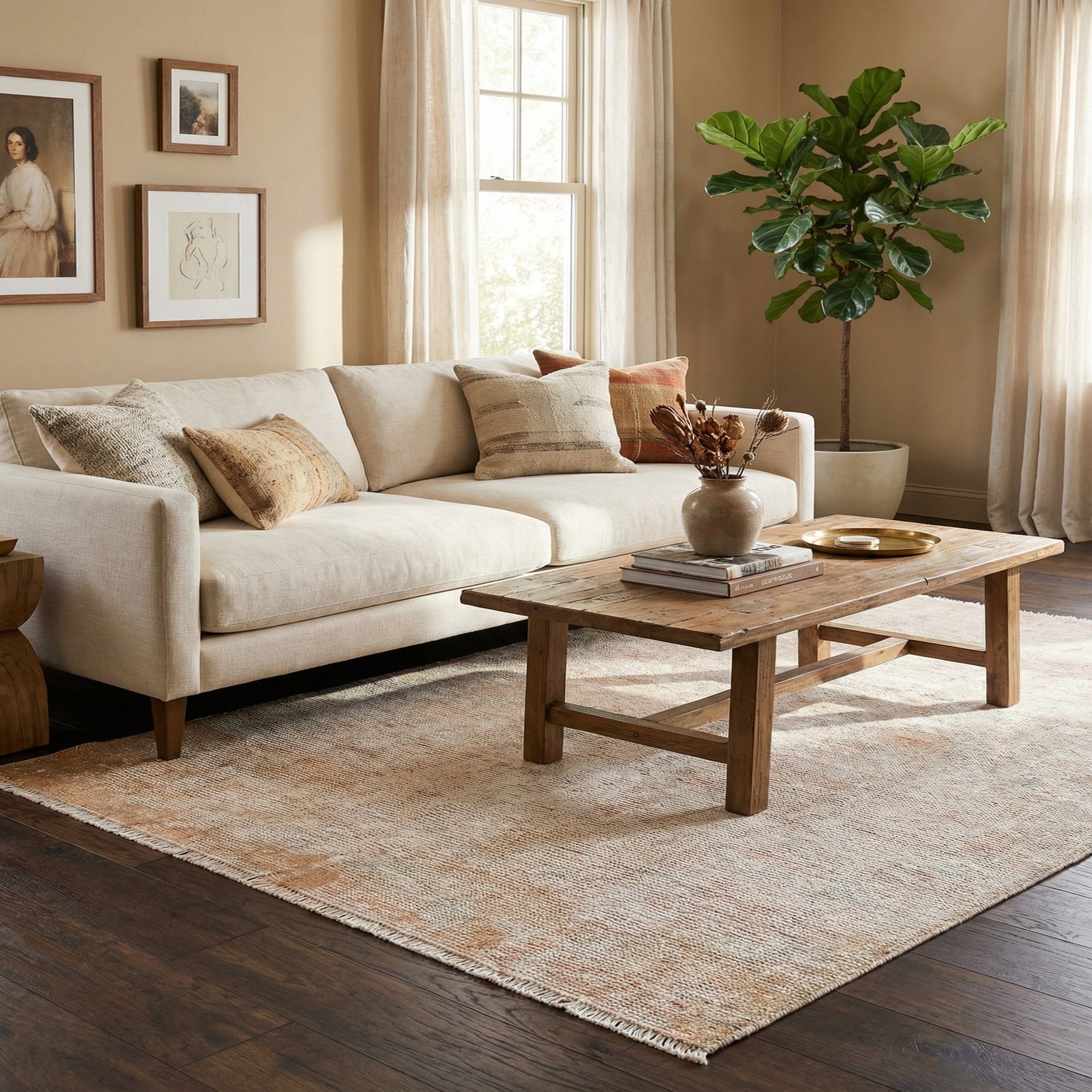 The low pile height of the rug adds to its versatile appeal, allowing for easy placement in areas with high foot traffic or under doors. Meanwhile, the inclusion of fringe on each end introduces a traditional feel. The soft texture and earthy palette render it compatible with an array of interior design themes, from minimalist and Scandinavian-inspired interiors to more rustic and farmhouse-style decors.