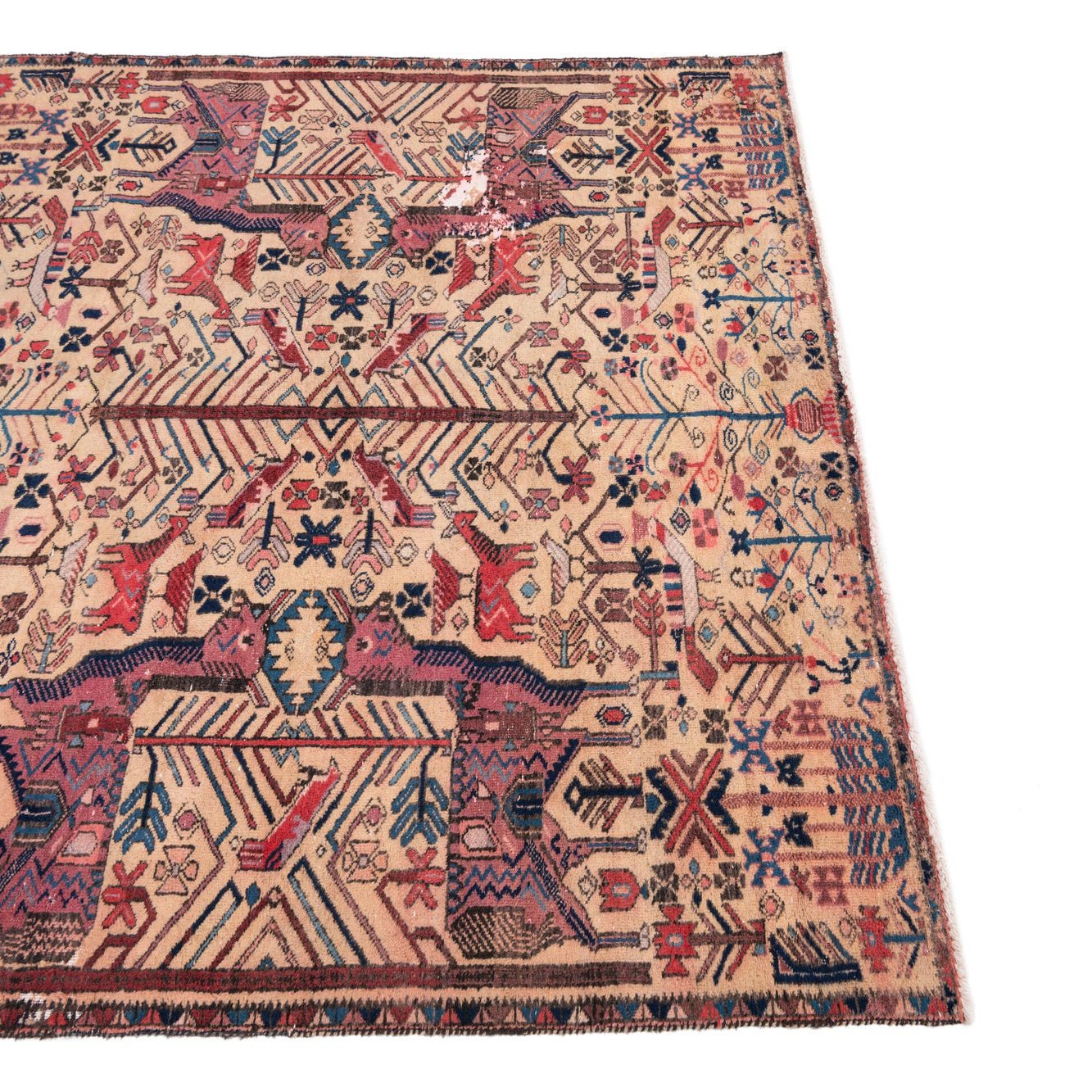 This Persian Ultra Vintage rug is an antique Persian Rug that has been washed, over-dyed, and then shaved down to a low pile. Look at the detail pictures to fully appreciate the uniqueness of this piece.