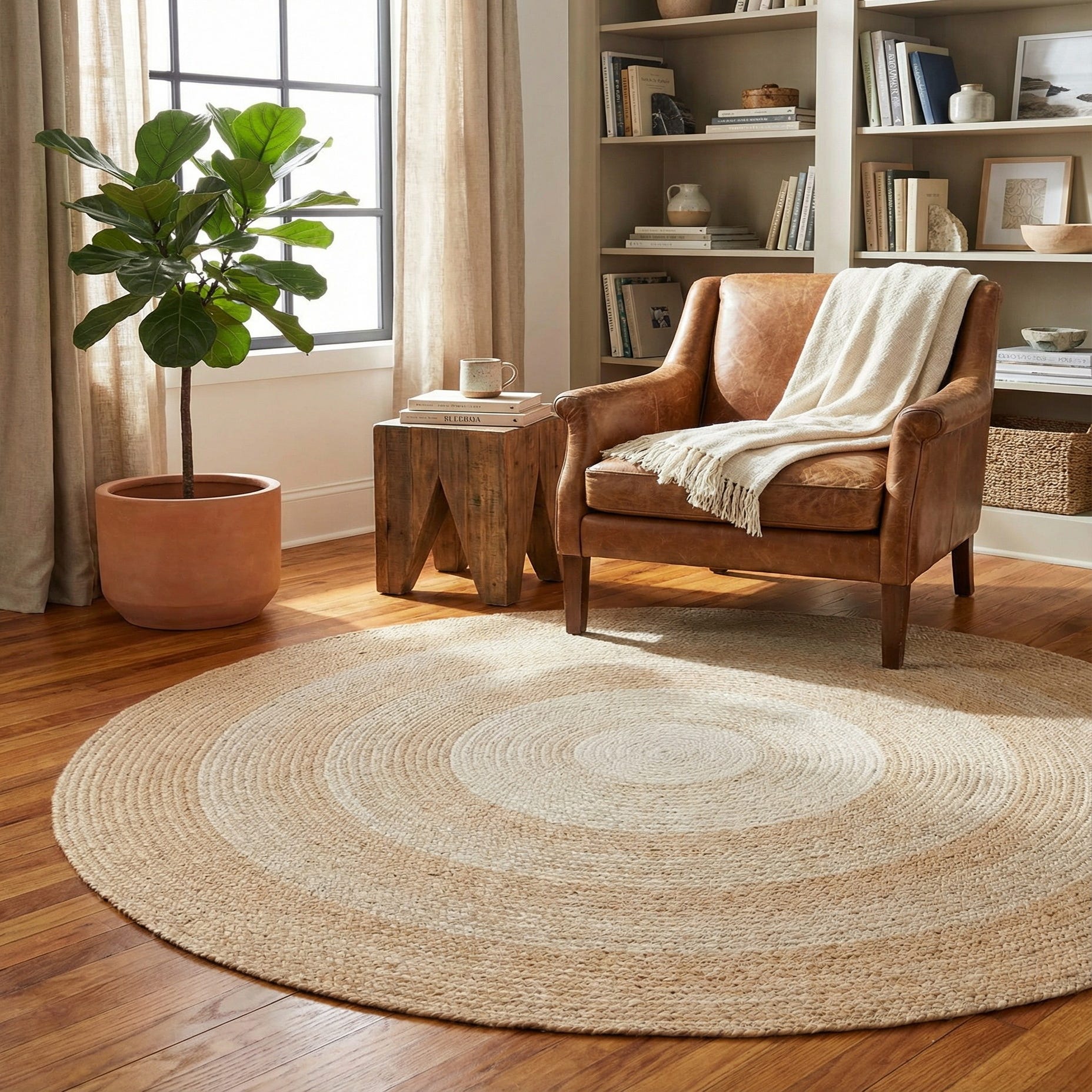 5' 1 x 5' 1 Handmade Hand Braided Wool Round Rug