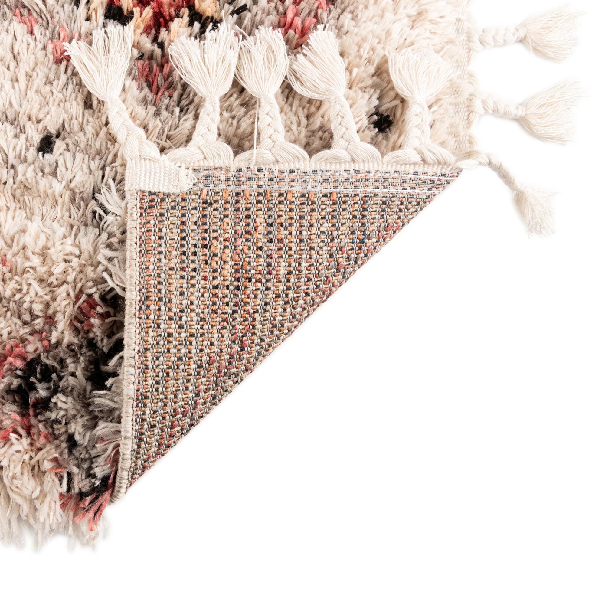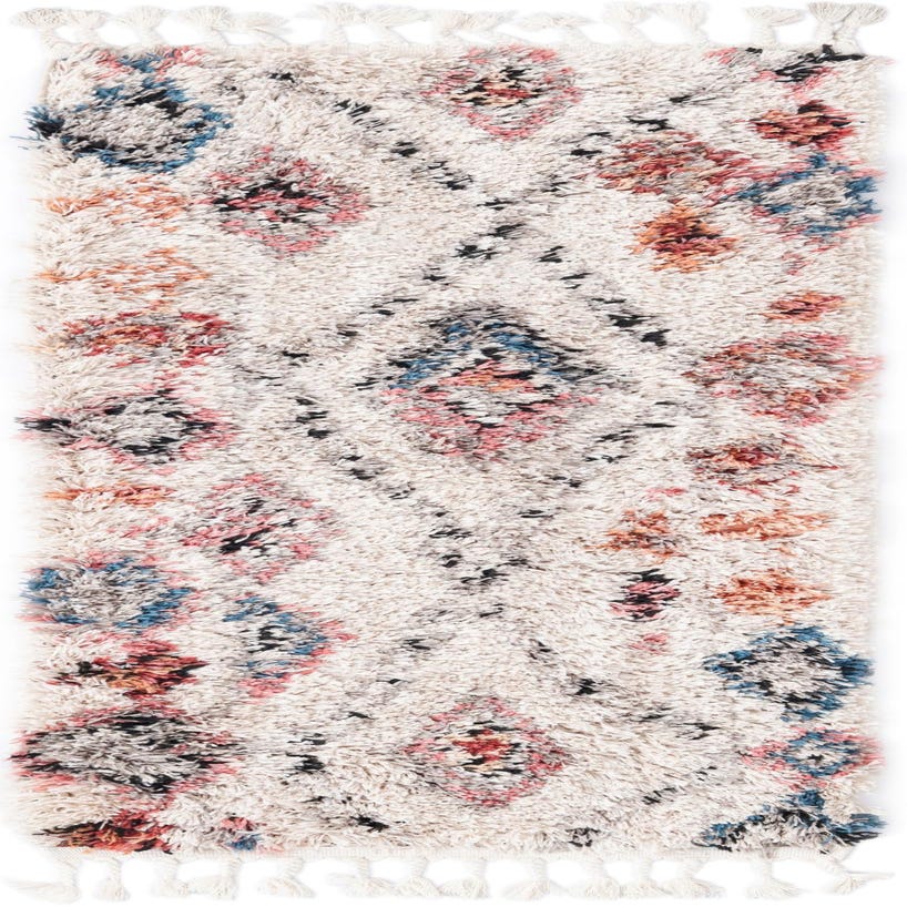 Primary color is Ivory. Colors in this rug include: Ivory, Blue, Black, Gray, Peach, Pink.