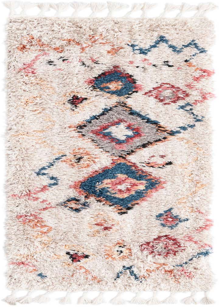 Primary color is Ivory. Colors in this rug include: Ivory, Blue, Beige, Gray, Peach, Black.