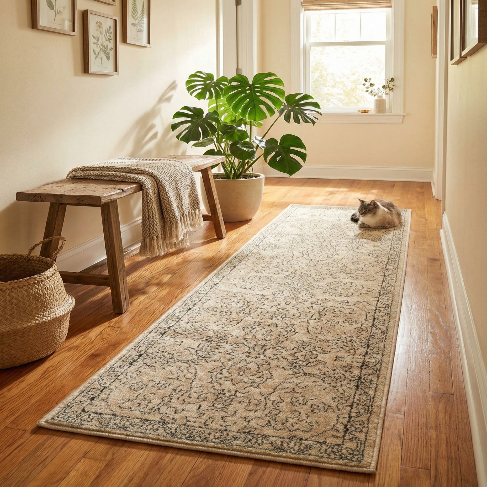 Primary color is Ivory. Colors in this rug include: Ivory, Beige, Gray.