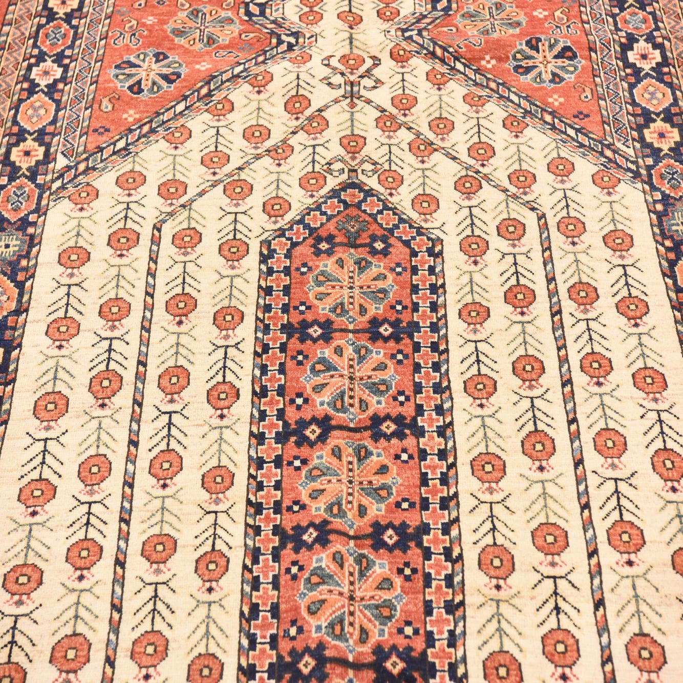 With its versatile design and rich coloration, this rug would be at home in a variety of settings, from a sophisticated study or office to an eclectic living room or dining space. The deep tones can anchor a room with dark wood furniture, while the ivory base can lighten and complement a more neutral or pastel-themed décor palette. This heirloom-quality piece is ready to bring both warmth and cultural depth to any interior.